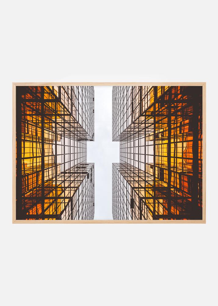 Póster con arquitectura futurista que crea un diseño emocionante con sus líneas gráficas. Los colores se desvanecen desde un naranja profundo en la base del edificio hacia el cielo blanco. El póster queda bien con un marco fino tanto en una decoración minimalista como en otros estilos con elementos gráficos. Combínalo con otras pinturas de arquitectura emocionante o entornos urbanos.