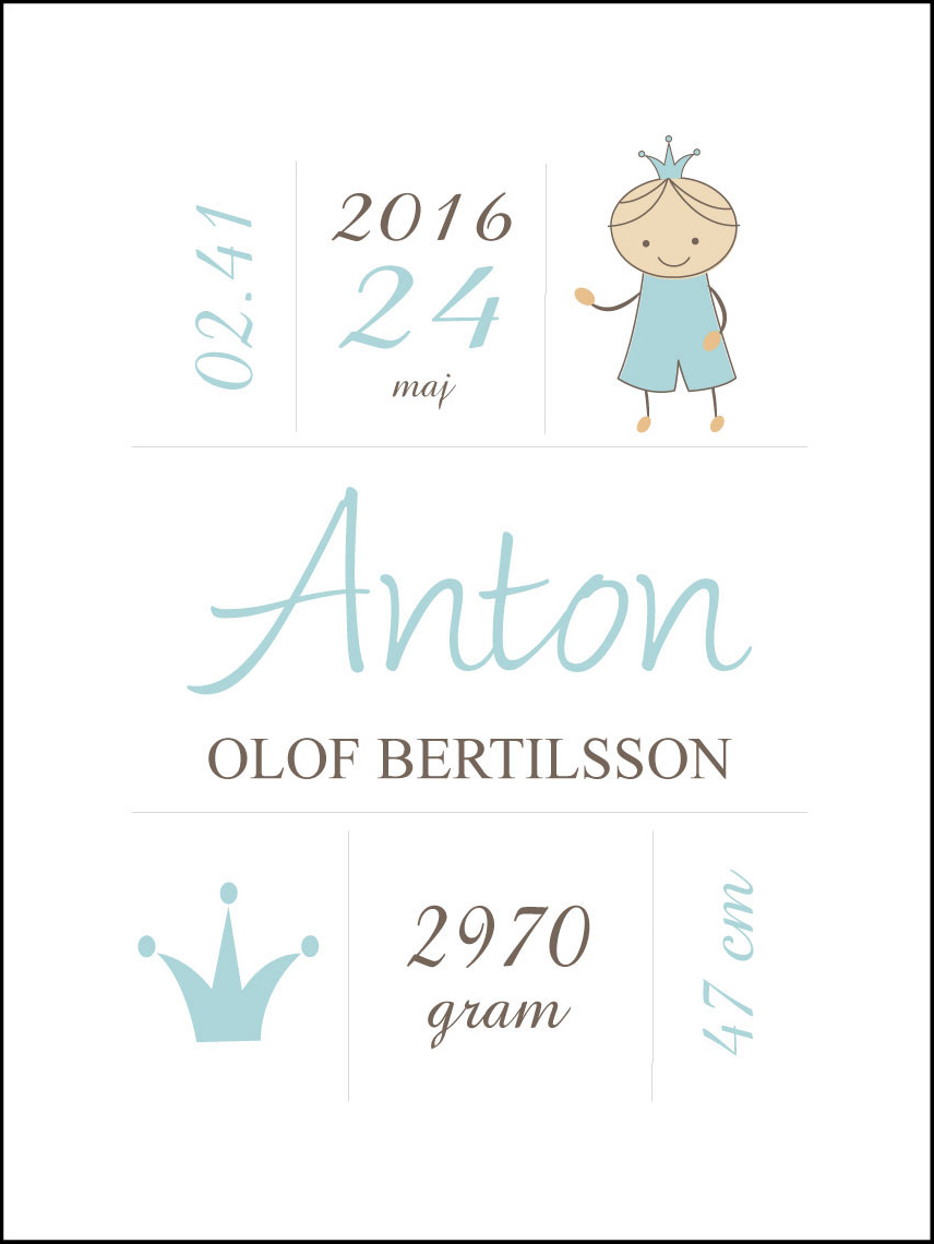 Prince Birth Póster Turquoise (21x29,7 cm (A4))