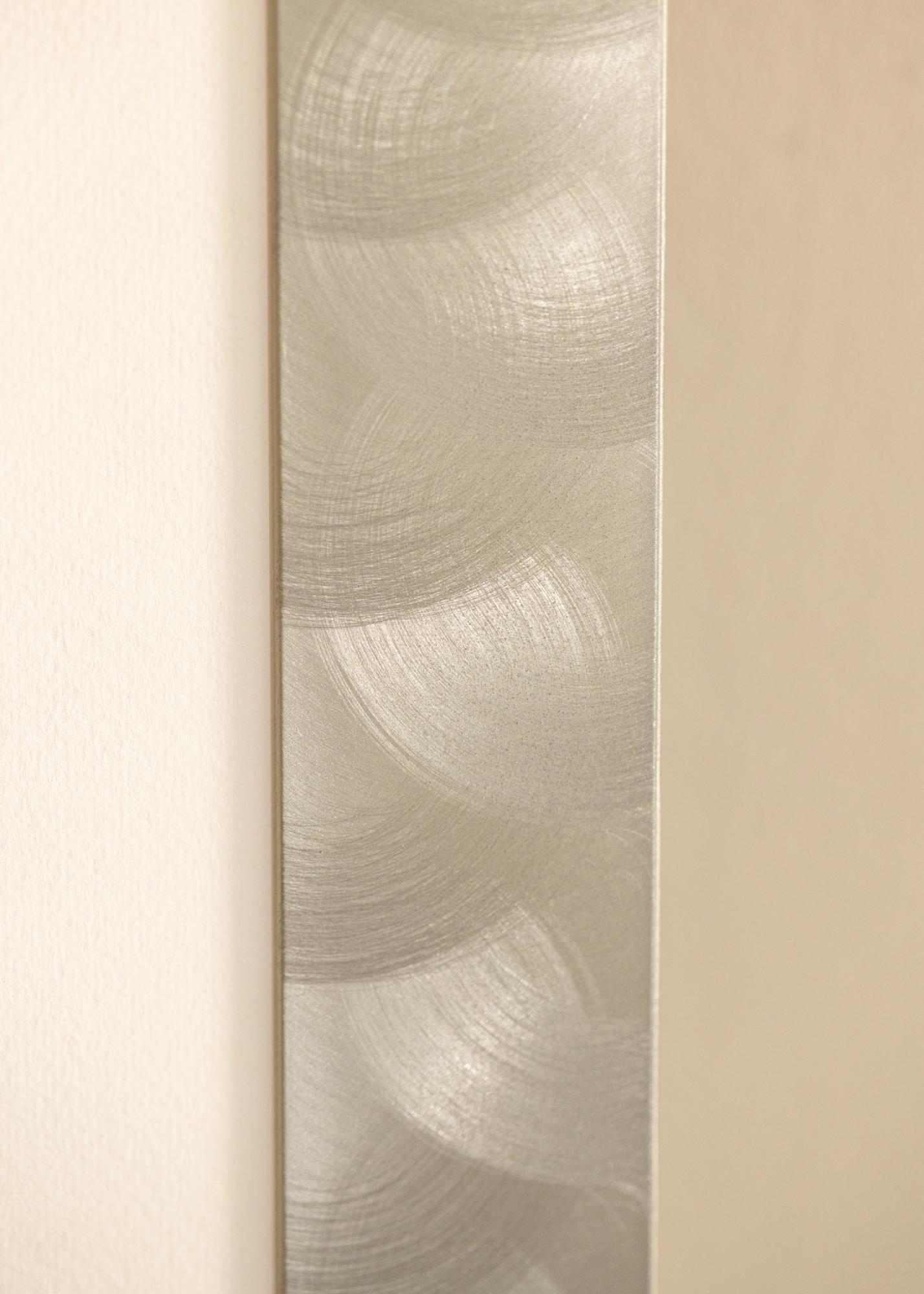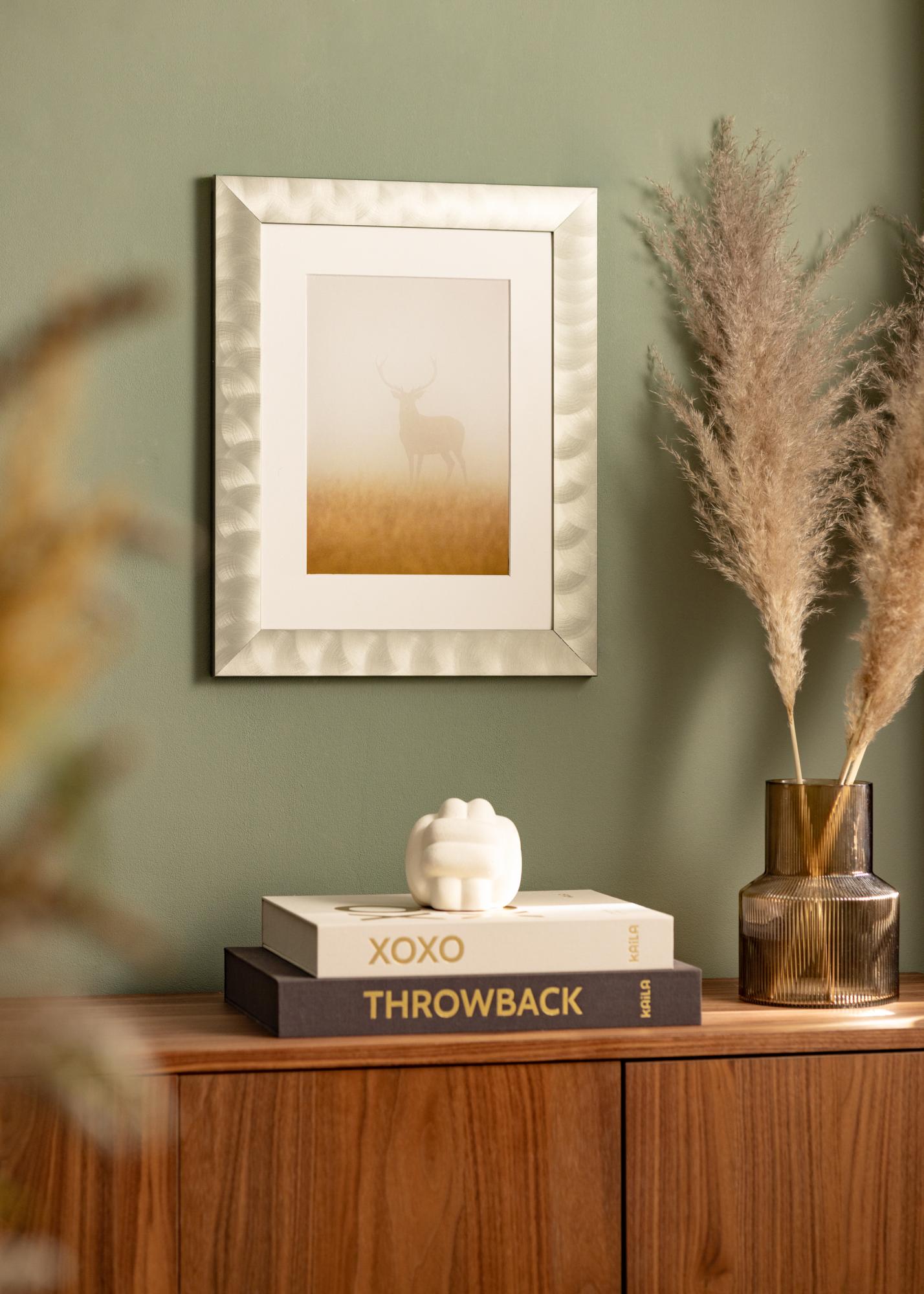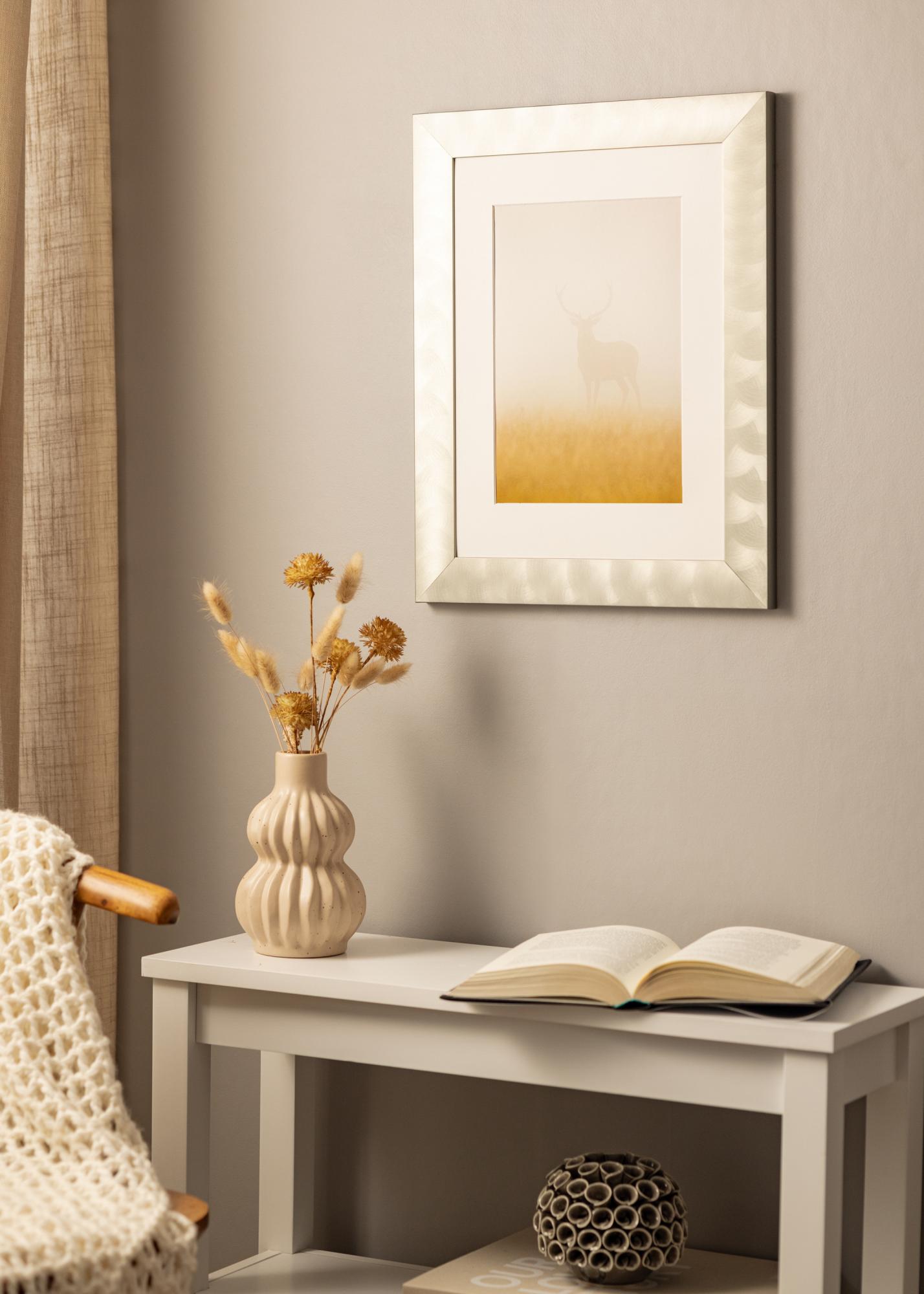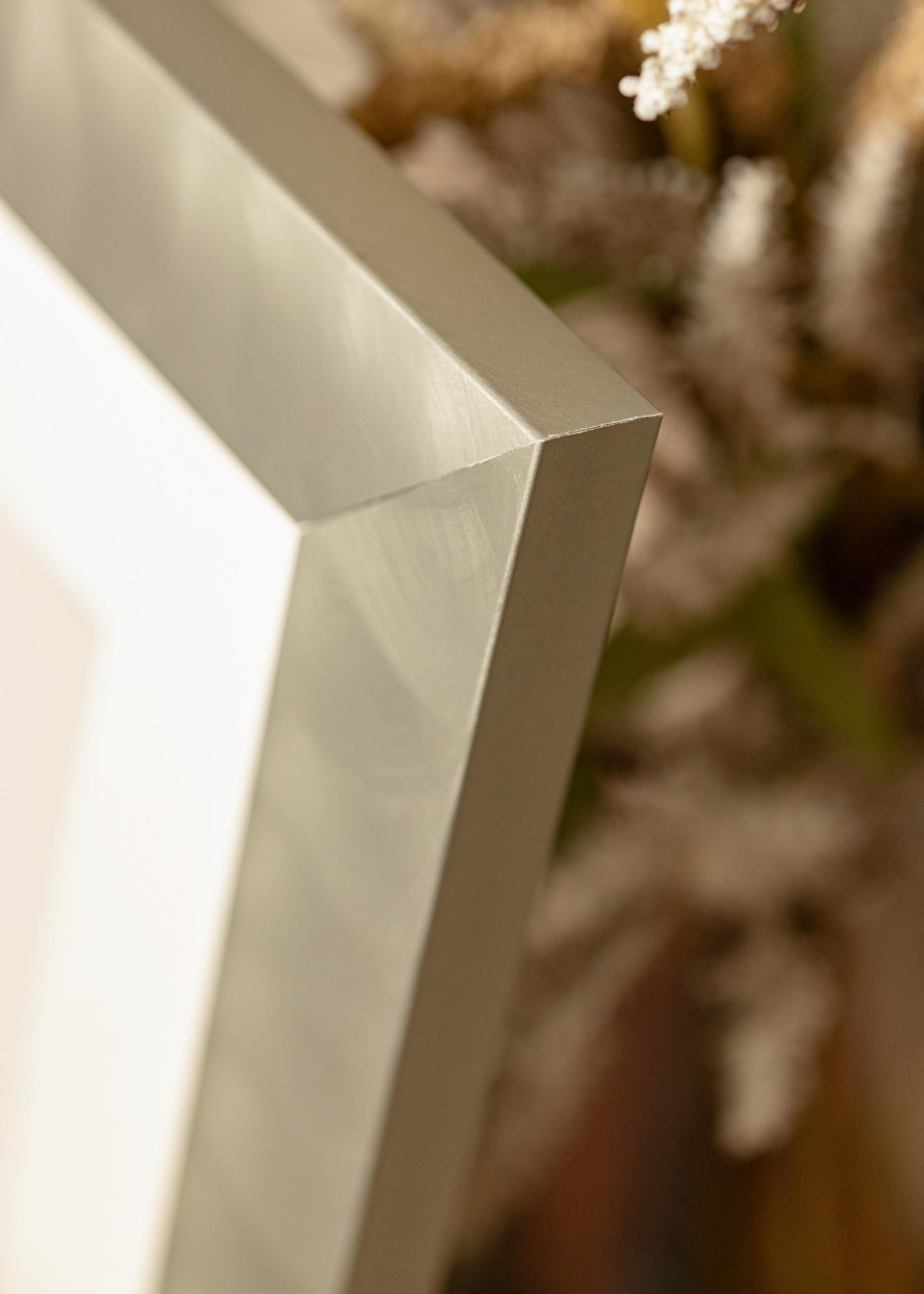Marco ancho fabricado en aluminio de alta calidad, con un aspecto de acero claro, que queda bien tanto con estilos de decoración minimalistas como con estilos de decoración más variados. El marco es adecuado para enmarcar fotografías en blanco y negro, pósters con citas y estampados gráficos. Cuelga el cuadro junto con motivos similares o combina marcos de diferentes tamaños para crear una galería de pared en la sala de estar y tener un punto focal diferente al televisor.
