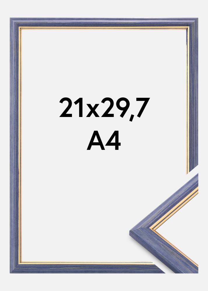 Este elegante marco de fotos de tamaño 21x29,7 cm es una combinación perfecta de diseño clásico y funcionalidad moderna. Con su acabado azul profundo y detalles dorados sutiles a lo largo del borde, ofrece un enmarcado sofisticado para tus motivos favoritos. El marco estrecho y perfilado proporciona un contraste elegante que destaca las obras de arte o fotografías de una manera única. La estructura de madera se ve discretamente a través del color, lo que le da al marco de fotos un carácter cálido y vibrante.
