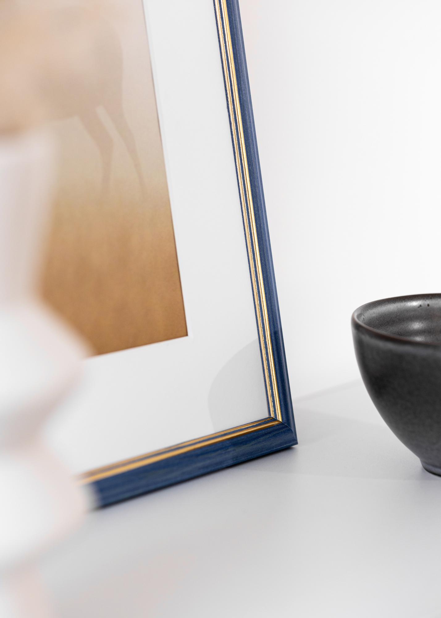 Este elegante marco de fotos de 59,4x84,1 cm es una combinación perfecta de diseño clásico y funcionalidad moderna. Con su acabado azul profundo y sutiles detalles dorados a lo largo del borde, este marco ofrece un encuadre sofisticado para tus motivos favoritos. El marco estrecho y perfilado proporciona un contraste elegante a obras de arte o fotografías, lo que lo hace ideal para decoraciones interiores tradicionales o inspiradas en el estilo náutico.
