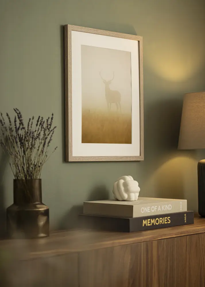 El marco tiene una moldura de 20 mm de ancho y una profundidad de 20 mm, que brinda una sensación estable y robusta. Fabricado en madera de ayous, este marco de fotos es tanto duradero como ligero, lo que facilita su manejo y colocación. La superficie mate ofrece una impresión suave y natural a la vez que resalta los detalles de la veta de una manera elegante.