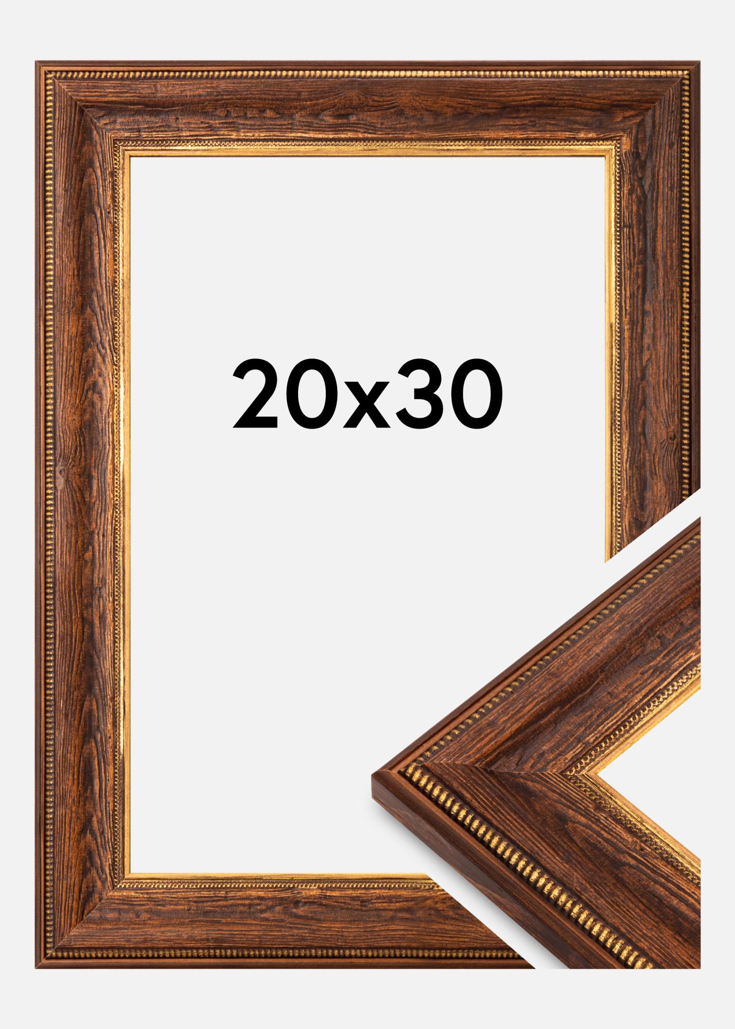 Este elegante marco de fotos de tamaño 20x30 cm es una combinación perfecta de encanto rústico y elegancia clásica. Fabricado en madera de alta calidad, el marco tiene un color marrón profundo con detalles decorativos en oro a lo largo del borde interior. La estructura de la madera es claramente visible y proporciona una sensación cálida y natural, mientras que los detalles dorados añaden un toque sofisticado que encaja de manera excelente en decoraciones tradicionales e inspiradas en estilos vintage.