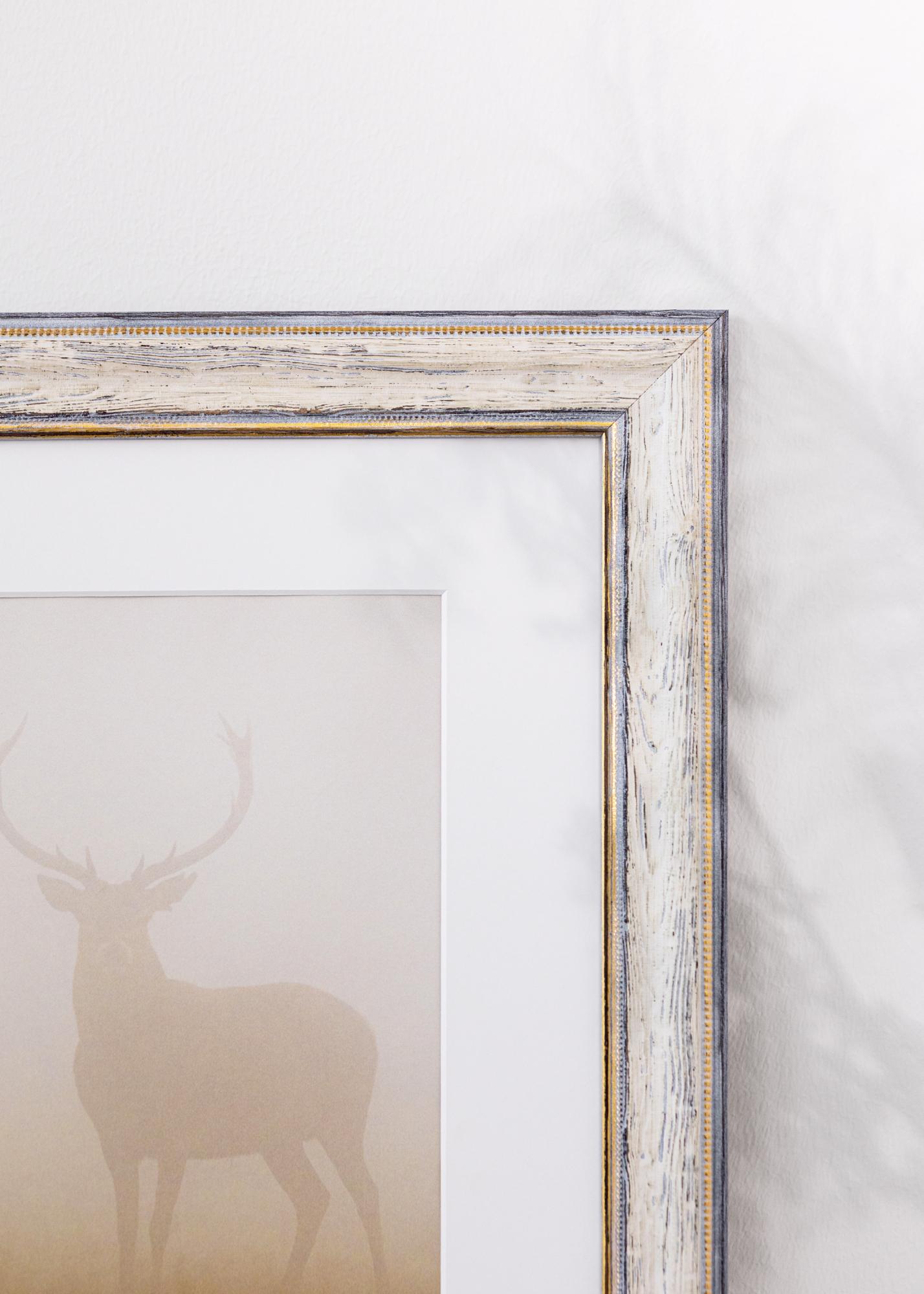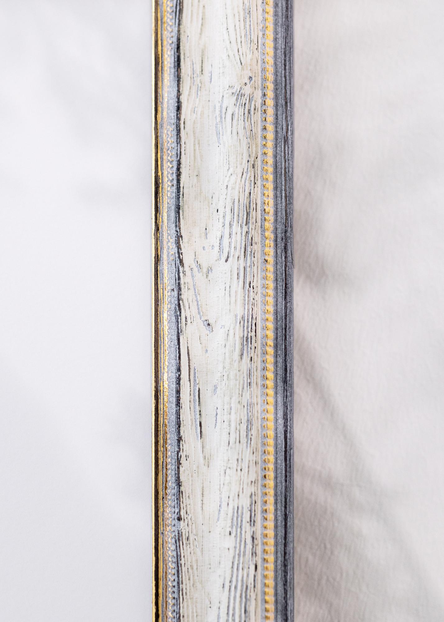 Este elegante marco de fotos es una perfecta combinación de inspiración vintage y funcionalidad moderna. Con su acabado rústico en madera blanca y gris, el marco ofrece un aspecto envejecido con encanto que encaja perfectamente en decoraciones campestres y shabby chic. Los sutiles detalles dorados a lo largo del borde interior añaden un toque clásico que realza tus fotografías y obras de arte con una sensación atemporal y sofisticada.
