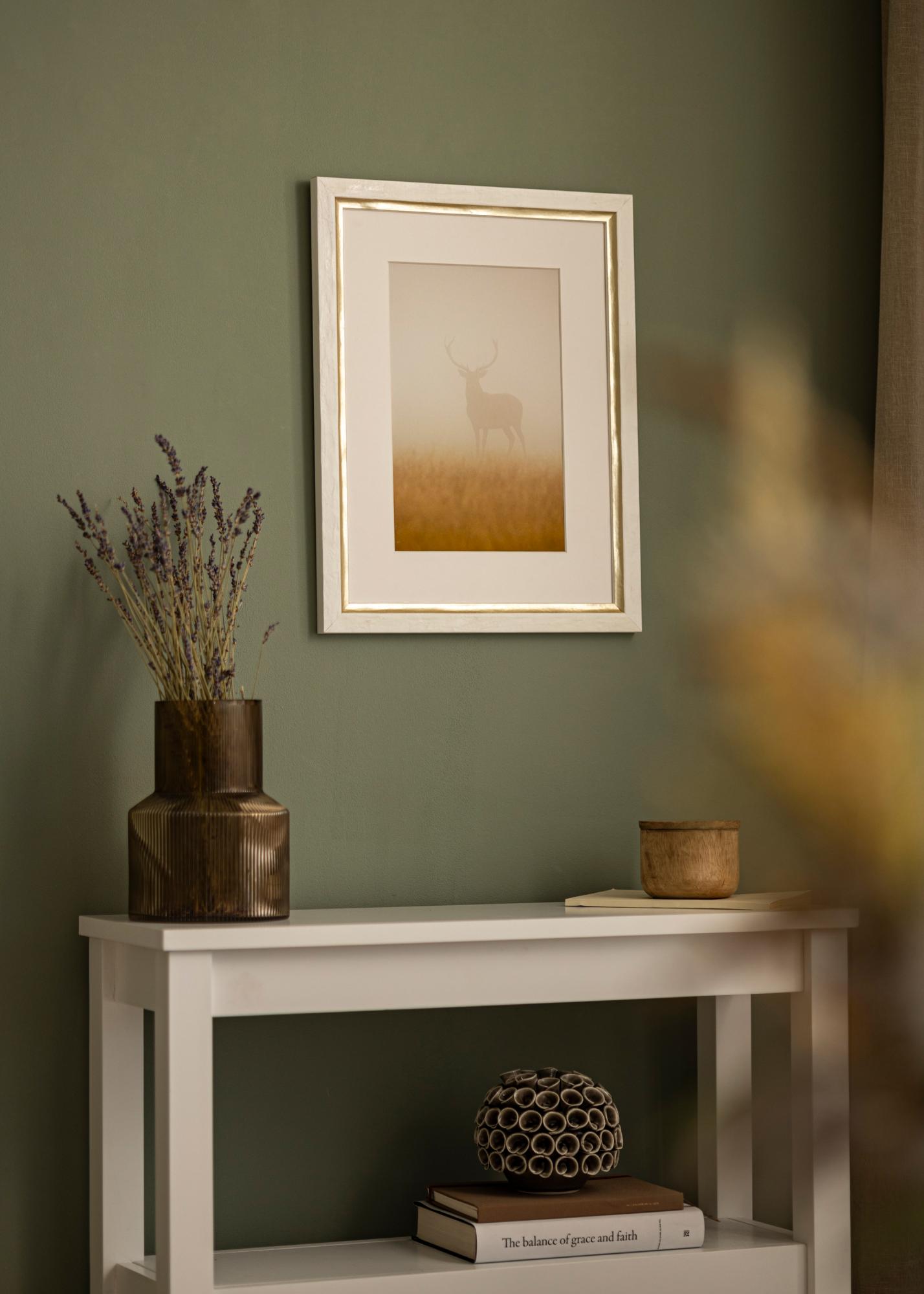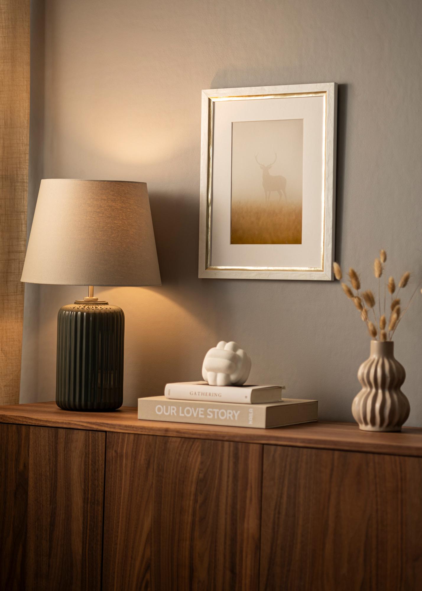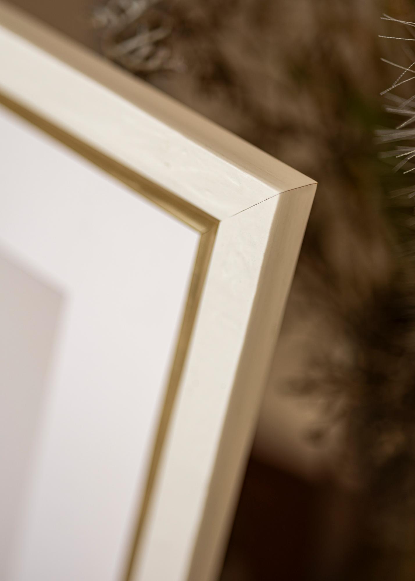 "Leonie" es un marco amplio hecho en Italia, que garantiza un diseño de alta calidad y elegante. El marco de la imagen tiene un perfil elegante en blanco y una superficie claramente estructurada, con un amplio borde plateado al lado de la imagen.