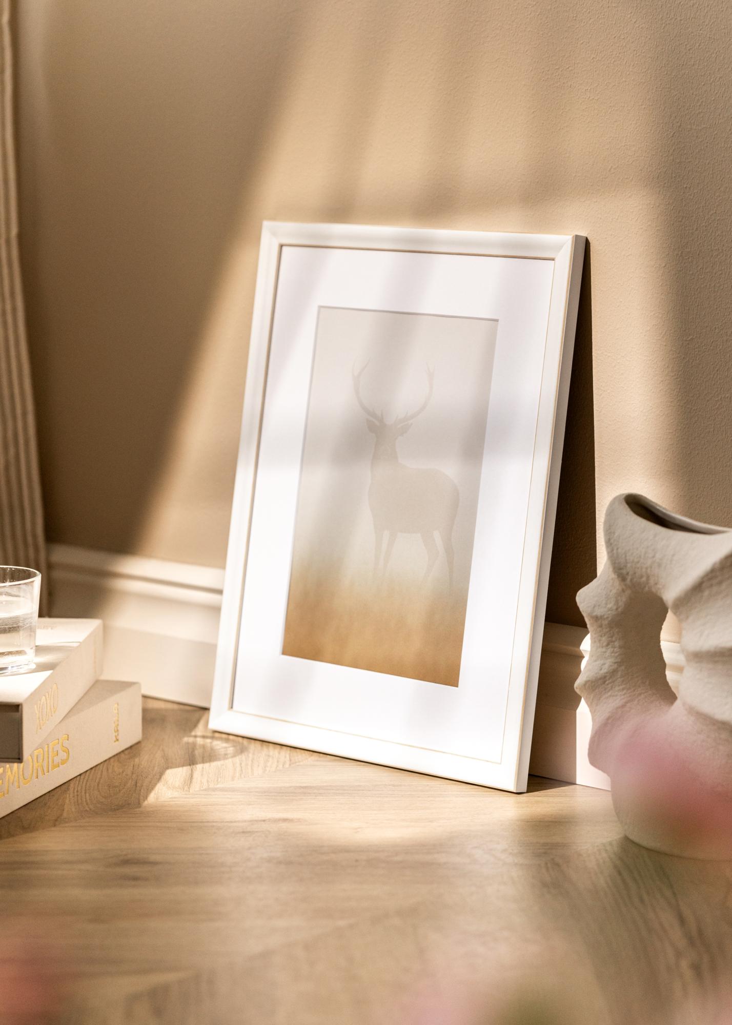 El marco del cuadro está fabricado en madera y tiene un perfil ligeramente curvado que le da un toque sofisticado. Con una moldura de 20 mm de ancho y una profundidad de 16 mm, ofrece tanto estabilidad como elegancia. El marco está equipado con colgadores de metal en la parte posterior, lo que facilita colgarlo tanto horizontal como verticalmente, dependiendo de lo que mejor se adapte a tu espacio.