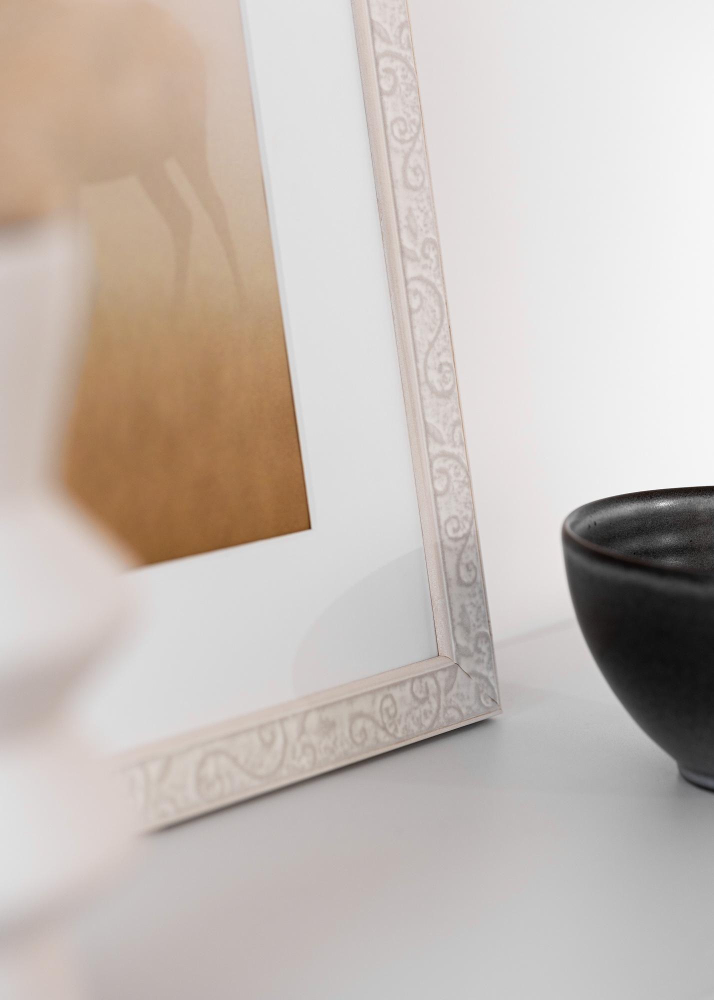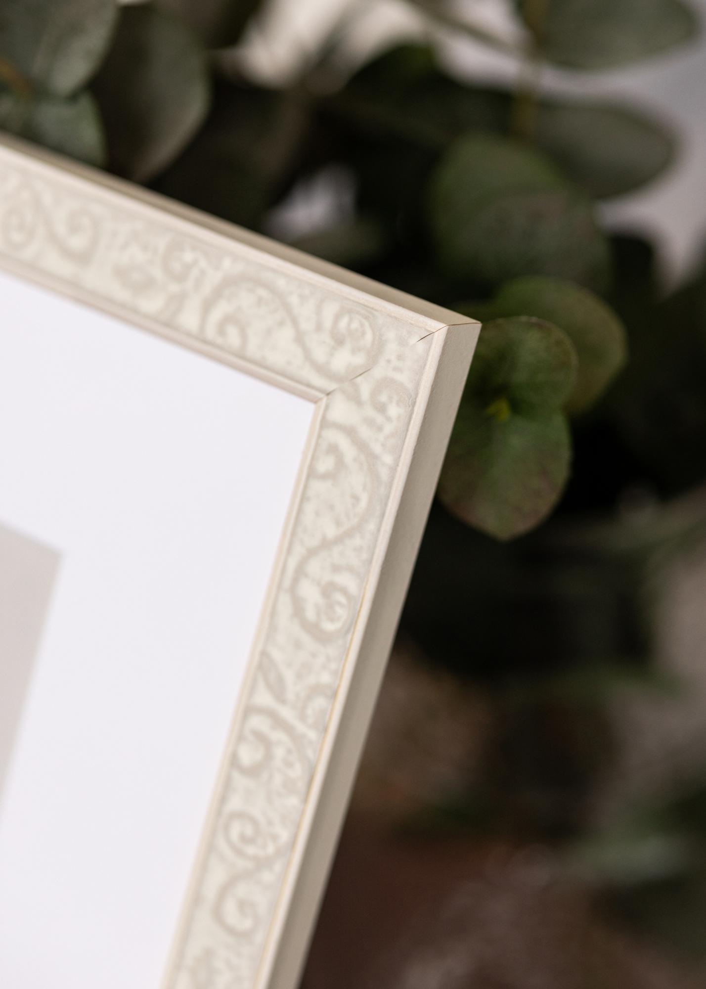 Transforma tus recuerdos en obras de arte con este elegante marco de fotos en beige claro. Con un sutil patrón ornamentado a lo largo de los bordes, ofrece una sensación elegante y romántica que se adapta perfectamente a estilos de decoración tanto clásicos como rurales. El marco está hecho de madera y tiene un perfil delgado que mide 25 mm de ancho y 14 mm de profundidad, proporcionando un enmarcado sofisticado para tus motivos favoritos.