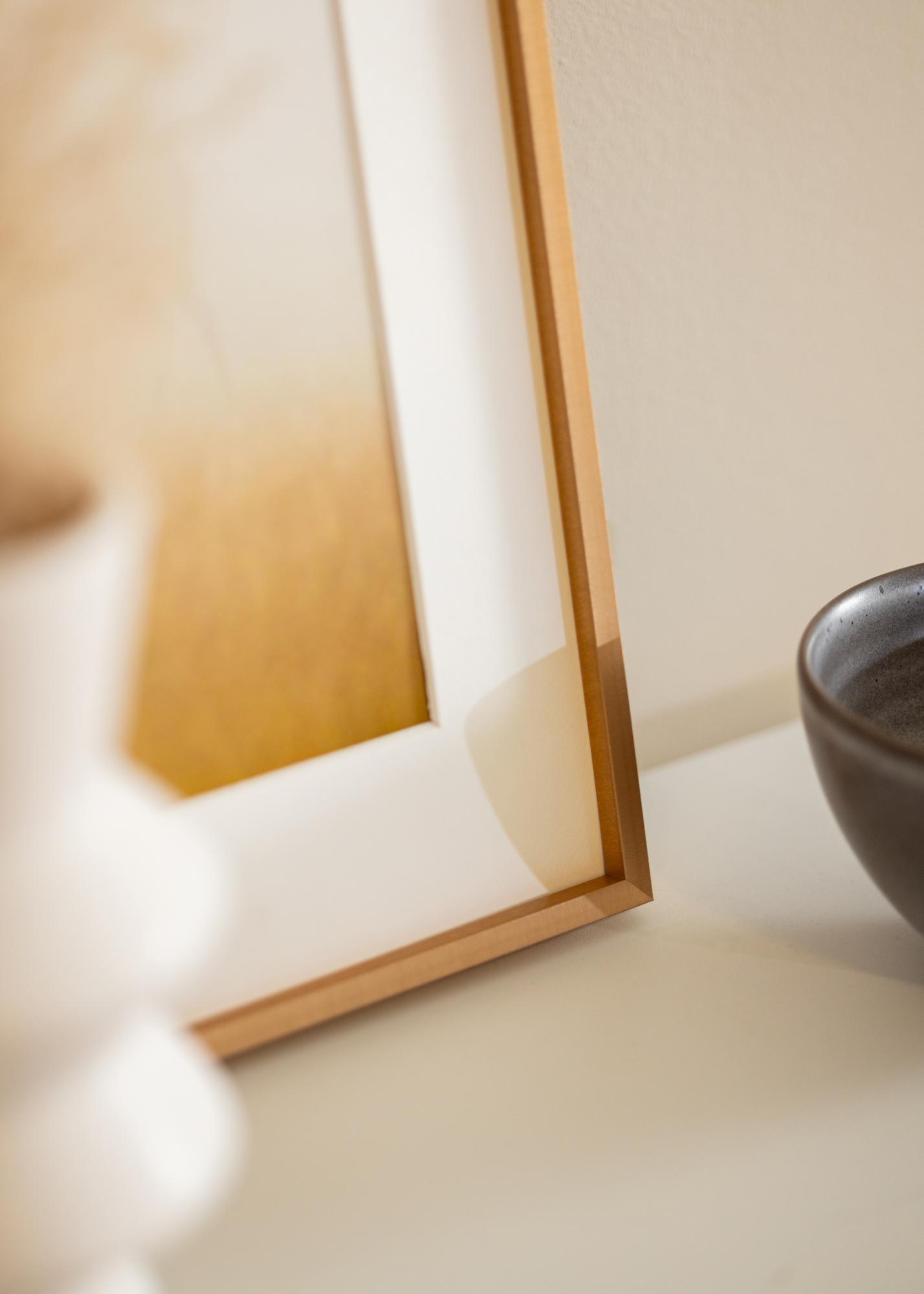 La superficie cepillada del marco proporciona un brillo suave y sutiles variaciones de color, lo que contribuye a una apariencia viva y dinámica. Los bordes marcados y el diseño minimalista refuerzan la expresión moderna, mientras que el tono cálido crea una impresión sofisticada y elegante. Esto hace que el marco no solo funcione como un encuadre práctico, sino también como un detalle decorativo en tu hogar.