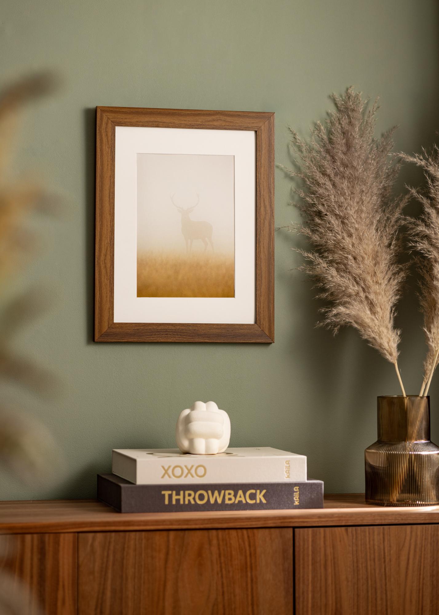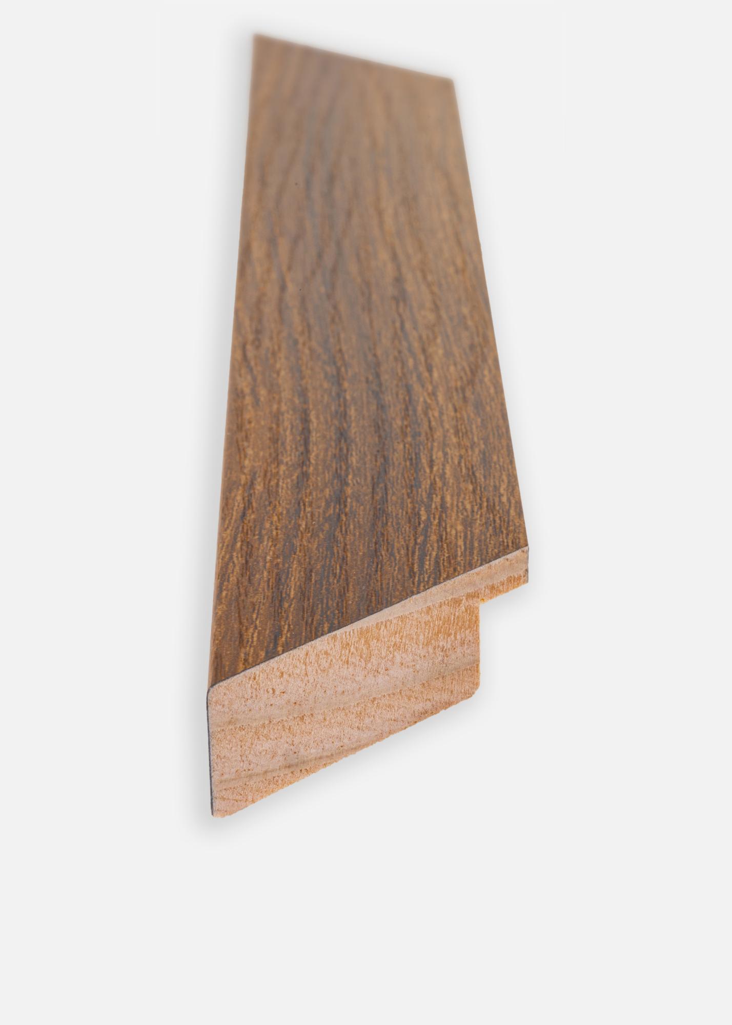 Marco de madera lacada de color marrón claro, de pino con ensamblaje de dedos, con un perfil ancho de 40 mm que le da a tu enmarcado una sensación exclusiva y es perfecto para enmarcar imágenes más grandes.