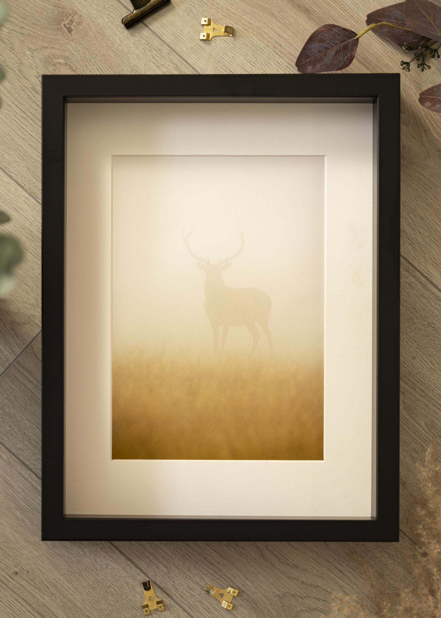 Marco de pino fabricado en Finlandia que está pintado directamente sobre la madera para una sensación de madera genuina. "Sala Negro" tiene una profundidad de 60 mm, perfecta cuando quieres enmarcar diferentes tipos de objetos. O sencillamente si quieres que tu enmarcado sobresalga un poco de la pared, lo que crea un efecto 3D fascinante. El marco también incluye una lista de distancia que te permite elegir entre dos profundidades de enmarcado. Llama a nuestro servicio de atención al cliente o visita la tienda más cercana y te ayudaremos con el enmarcado de todo tipo de recuerdos.