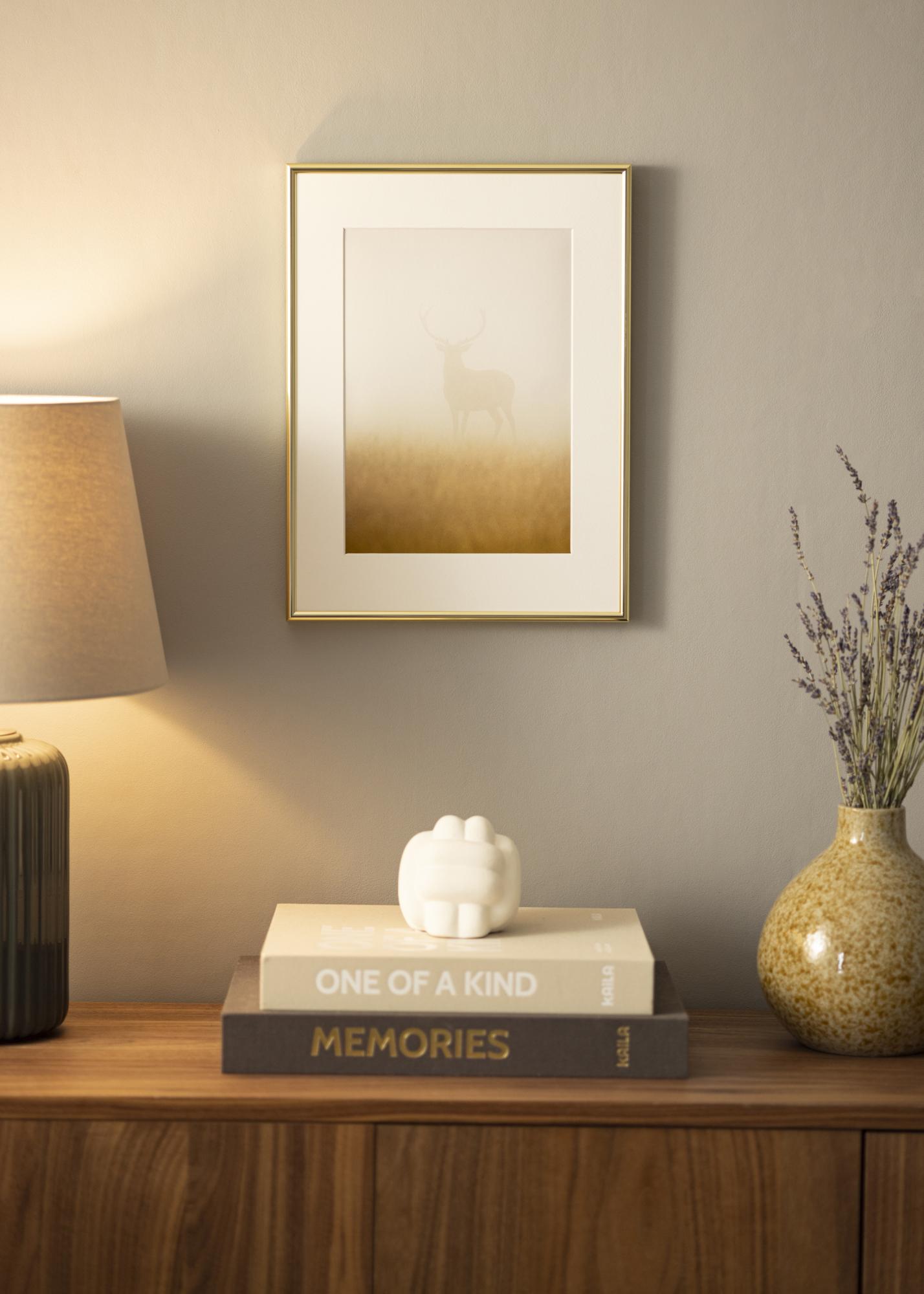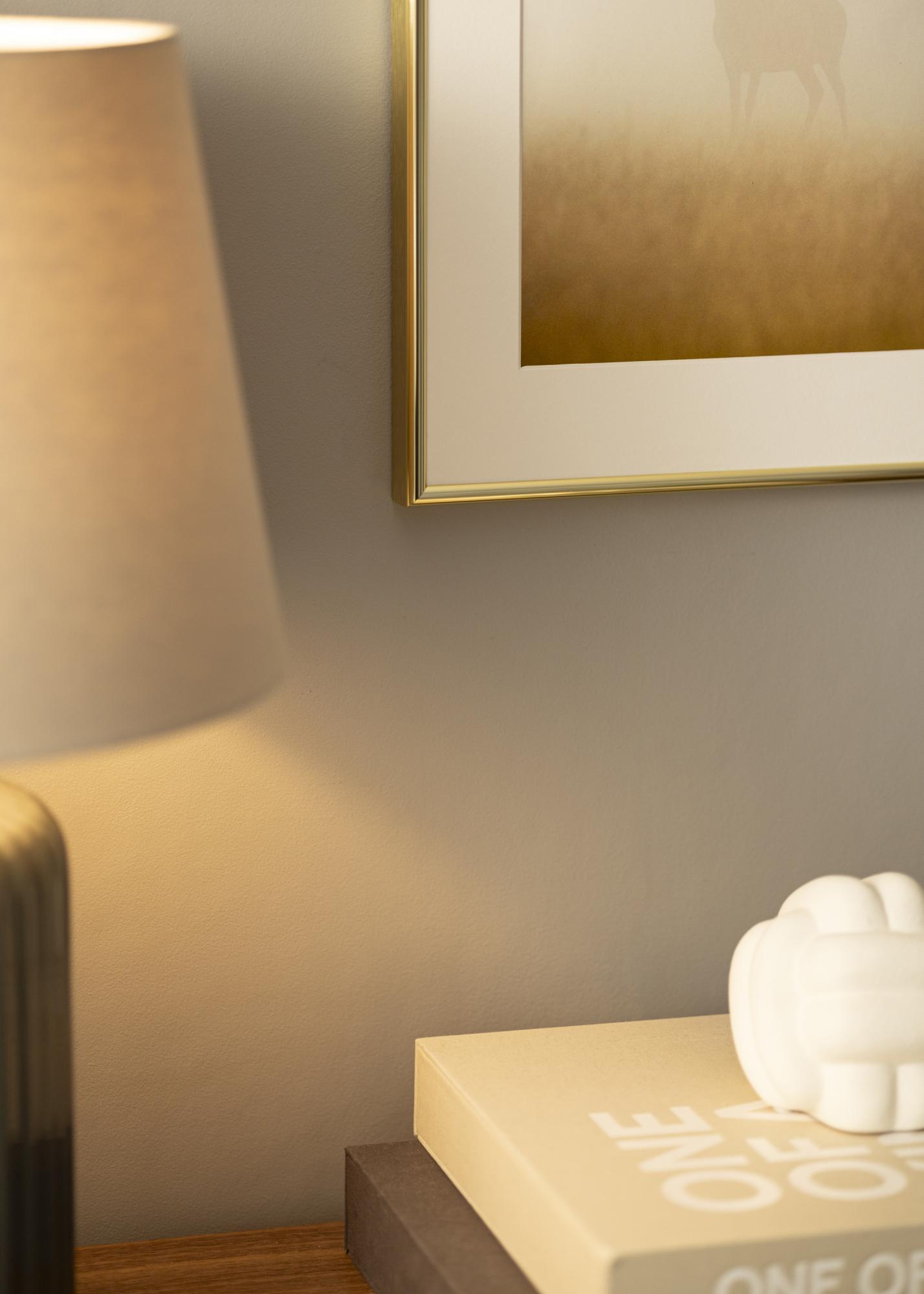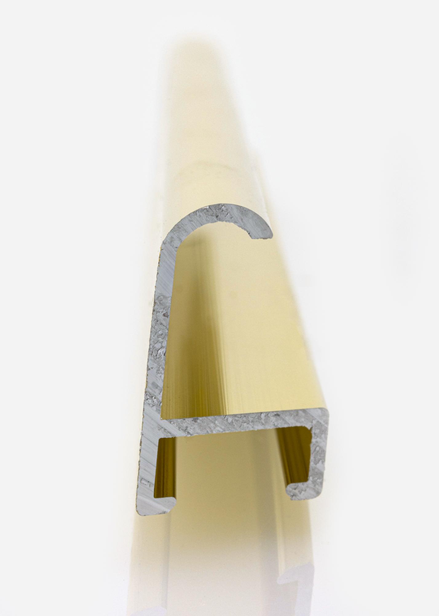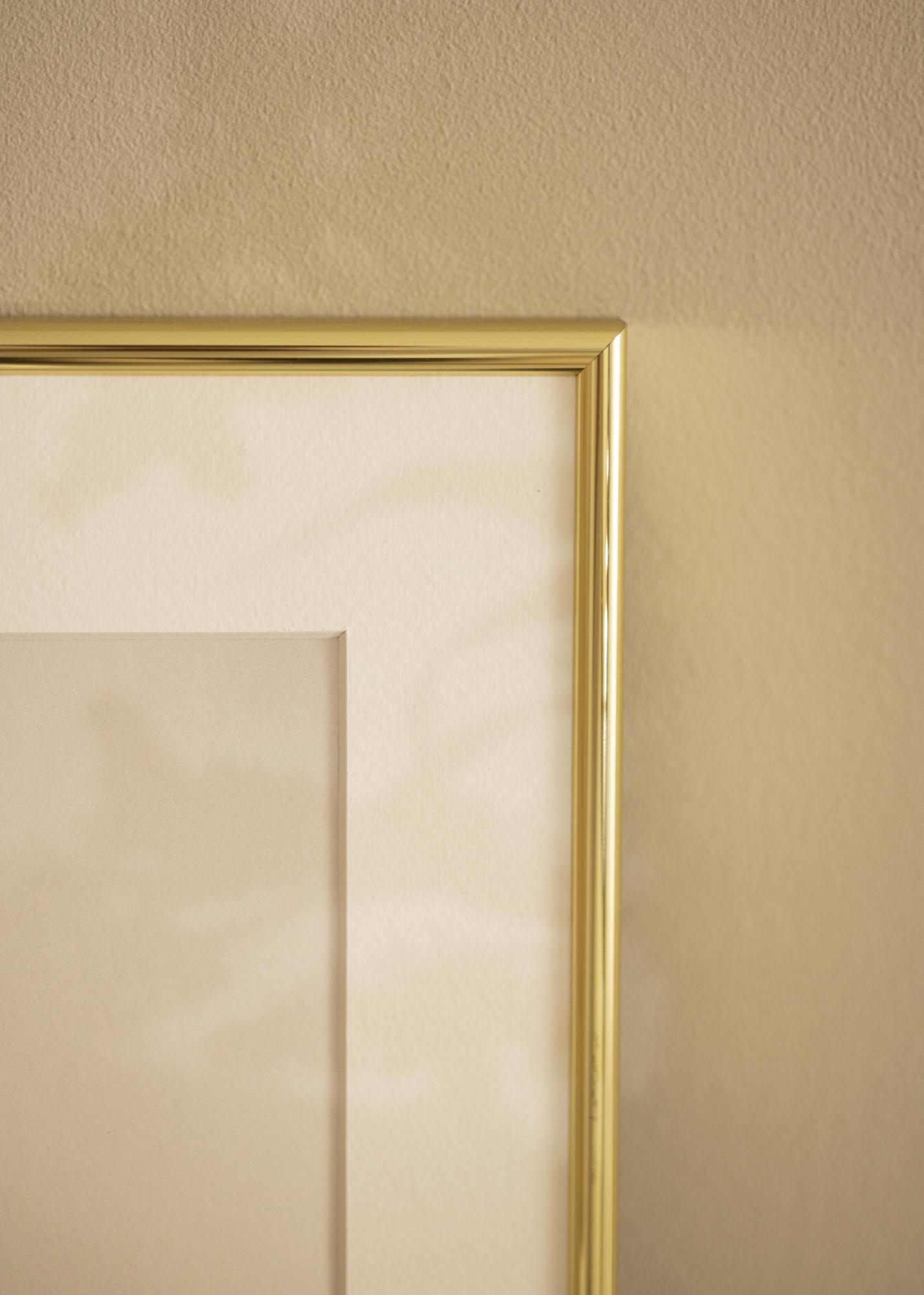 Marco moderno dorado brillante con lados cepillados que tiene un perfil profundo de 26 mm. Esto hace que la imagen sobresalga de la pared y cree un efecto tridimensional encantador. Perfecto cuando buscas un marco dorado sencillo que le dé a tus imágenes un elegante enmarcado.