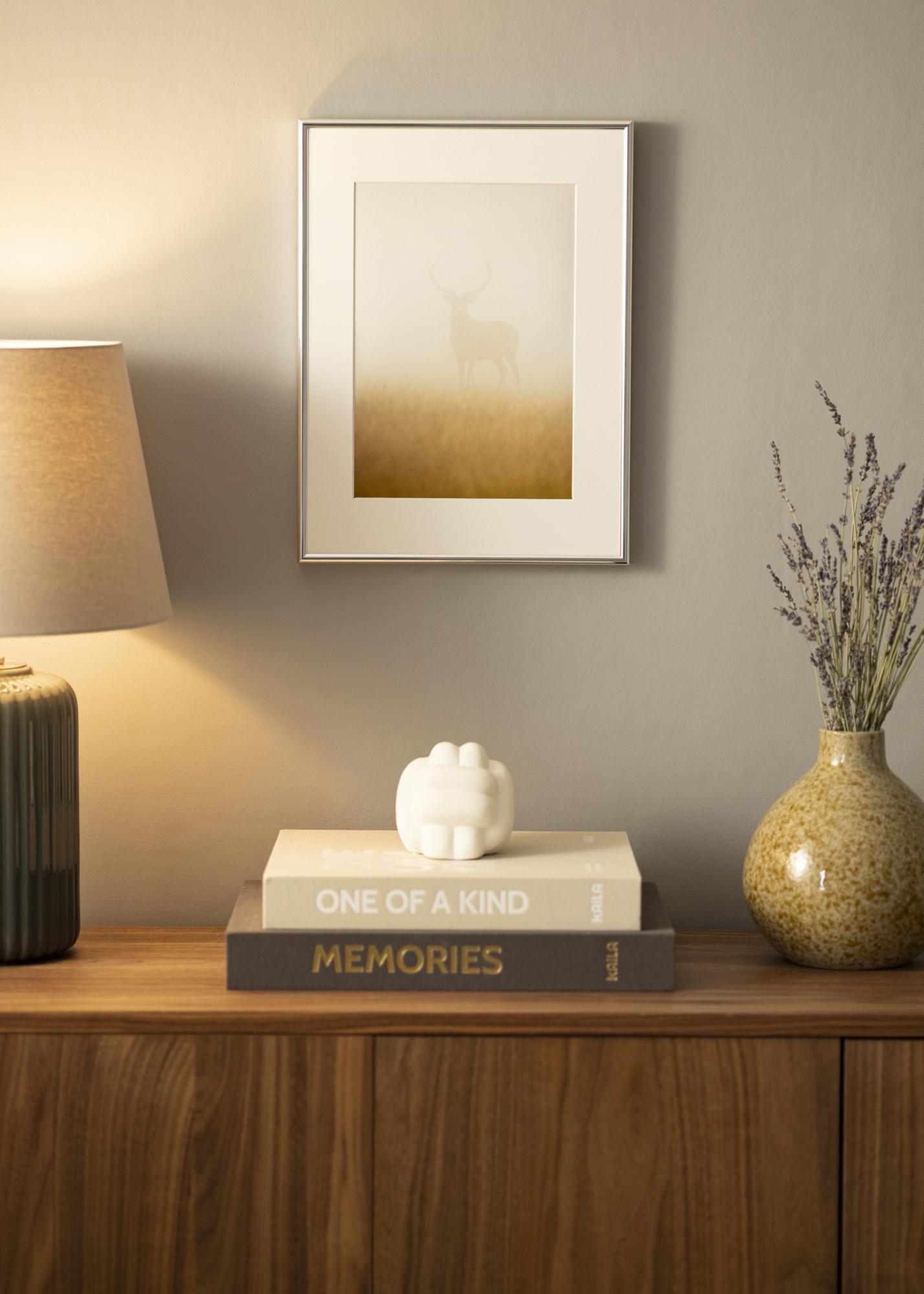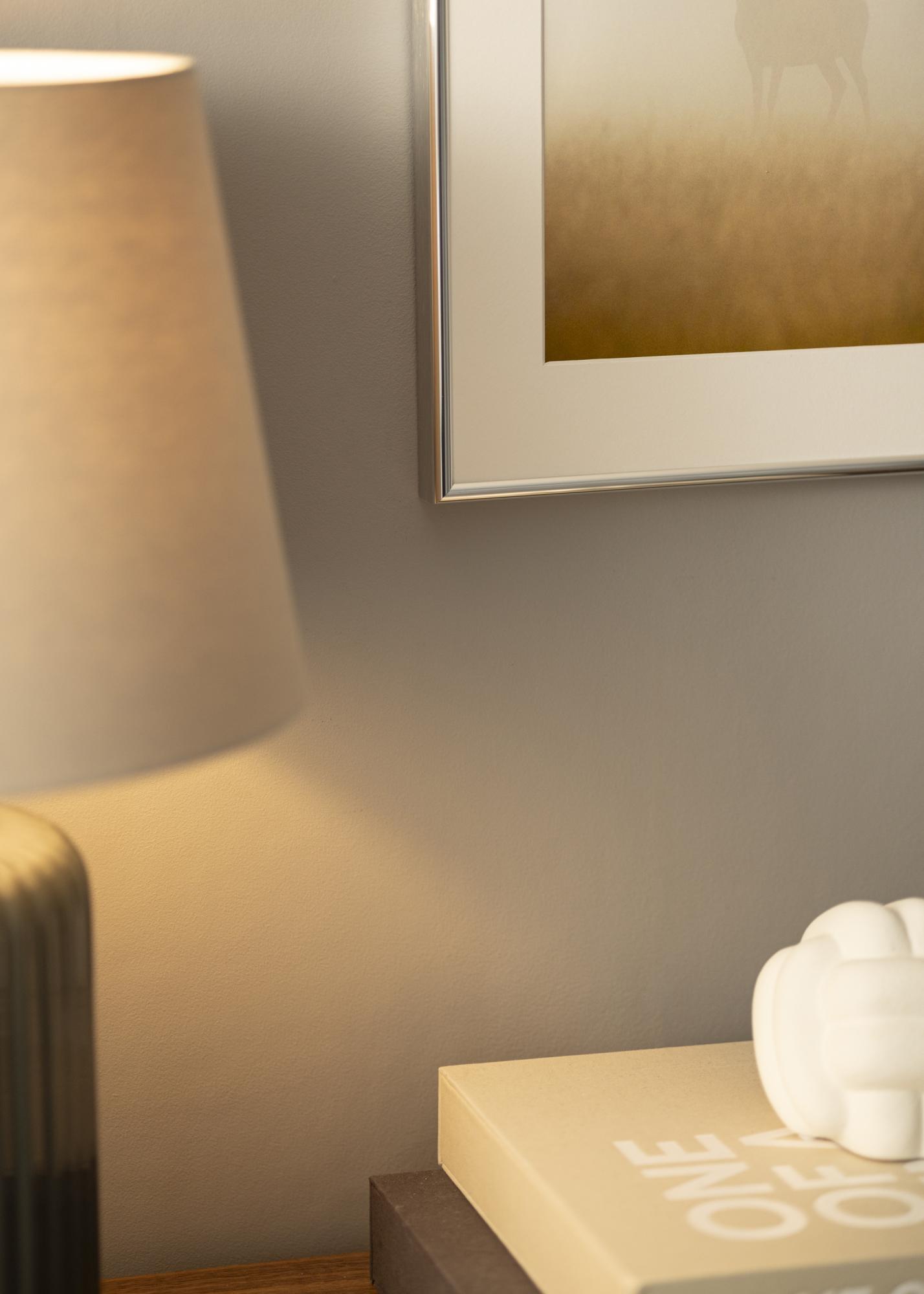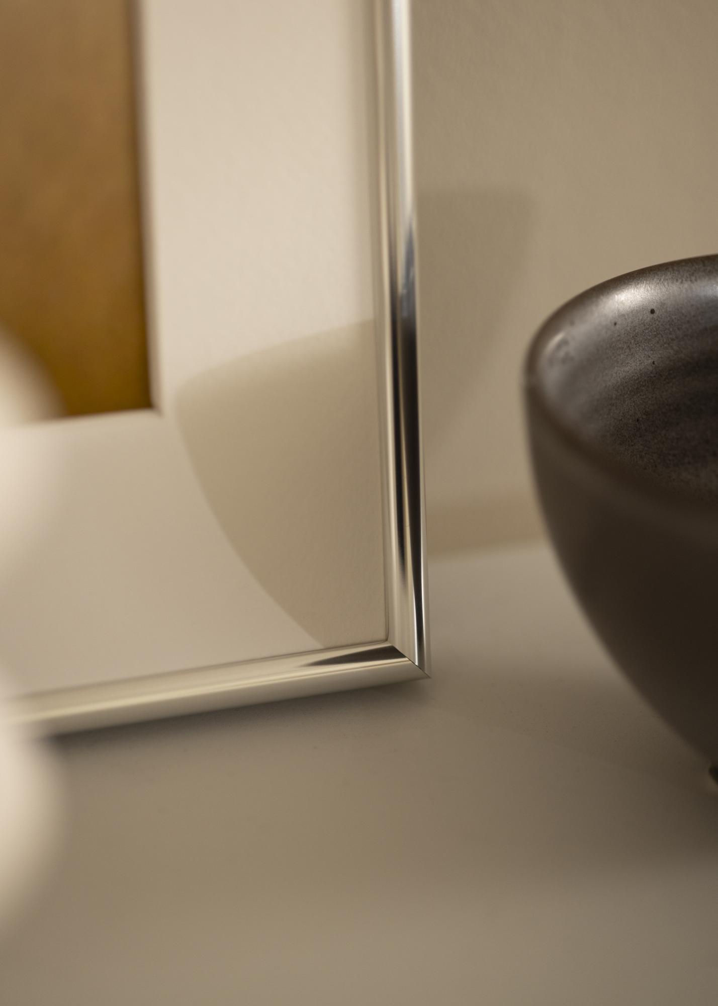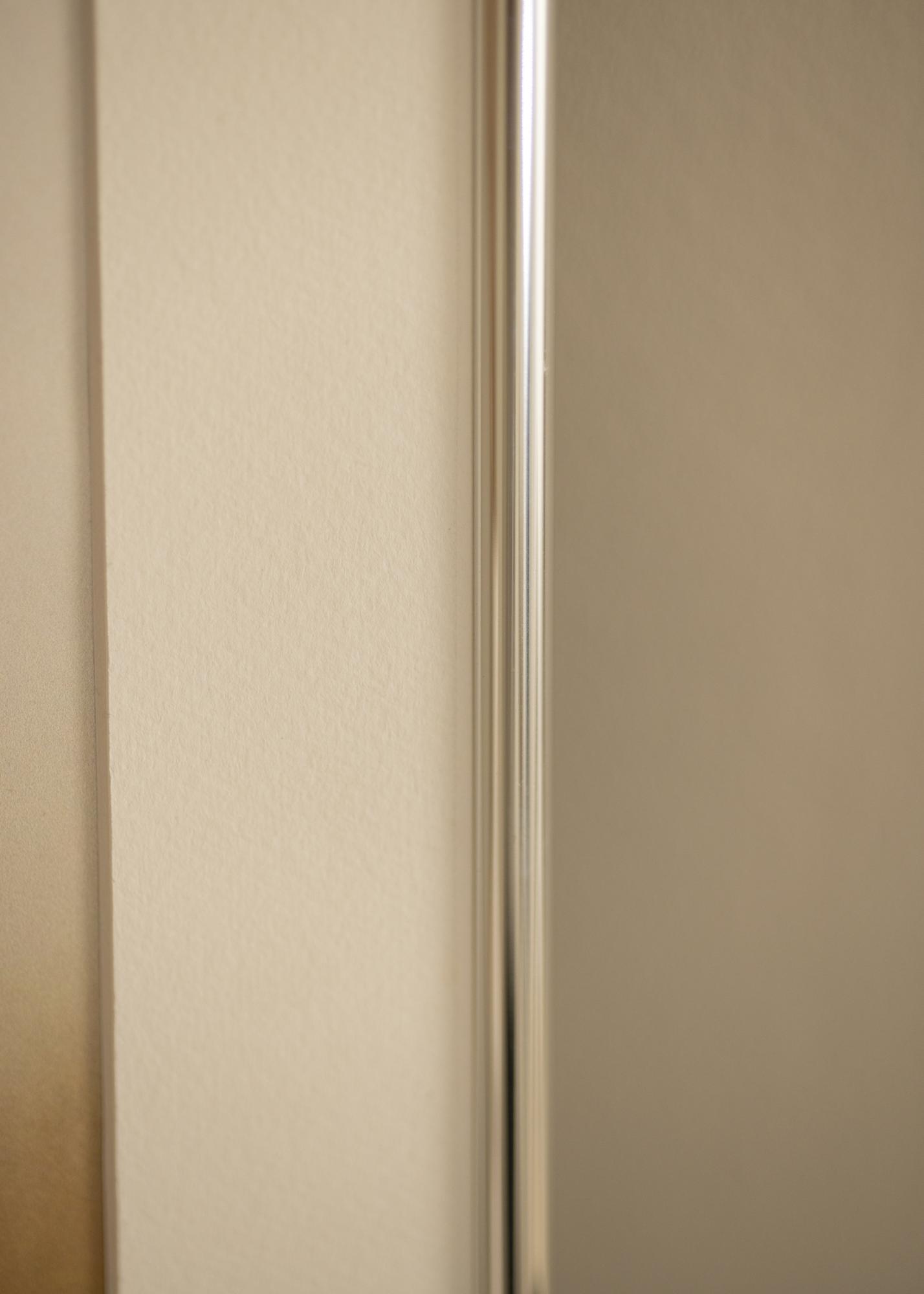 Marco moderno plateado brillante con lados cepillados que tiene un perfil profundo de 26 mm. Esto hace que la imagen sobresalga de la pared y cree un efecto tridimensional elegante. Perfecto cuando buscas un marco plateado sencillo que le dé a tus imágenes un enmarcado elegante.