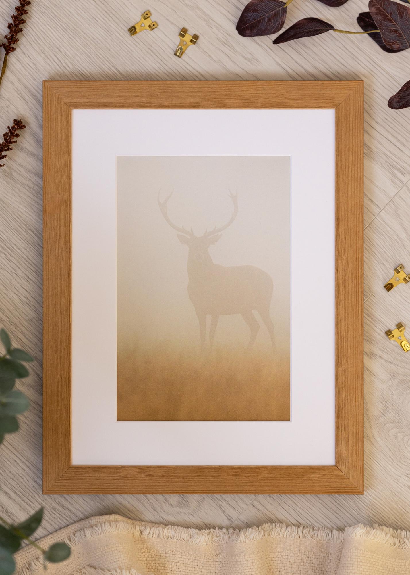 Fabricado con pino de alta calidad en Italia, este marco ofrece tanto durabilidad como elegancia. El listón del marco tiene 20 mm de ancho y una profundidad de 14 mm, proporcionando un encuadre robusto y estable para tus obras de arte. La superficie en color roble complementa muchos estilos de interiores diferentes, desde el moderno hasta el clásico.
