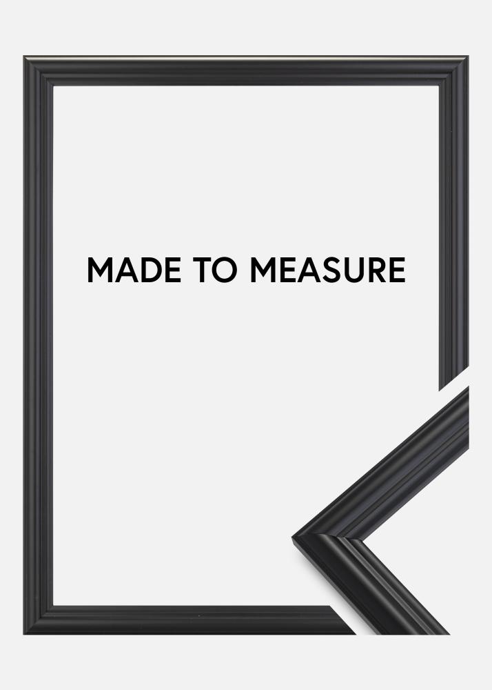 Siljan Marco Negro 8C - Tamaño opcional tiene un listón de madera con un perfil clásico pintado con un color negro mate. Se fabrica según tus deseos en nuestro propio taller de enmarcado.