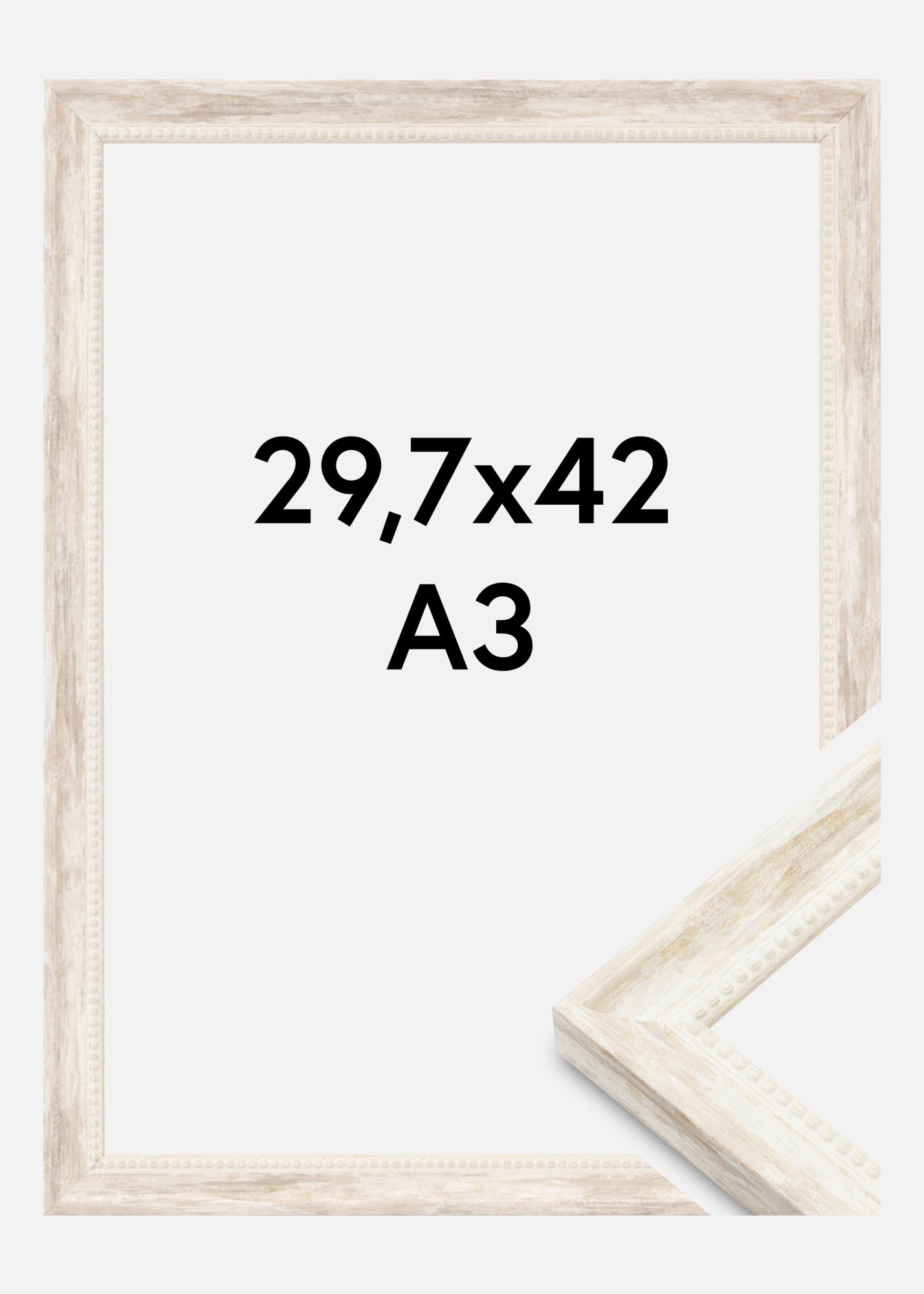 Este hermoso marco de fotos en tamaño 29,7x42 cm es una combinación perfecta de encanto rústico y elegancia moderna. Con su color blanco y borde de perlas decorativo a lo largo del interior, ofrece una sutil sensación antigua que realza tanto obras de arte como fotografías. El marco está hecho de madera, lo que le proporciona una construcción sólida y duradera.
