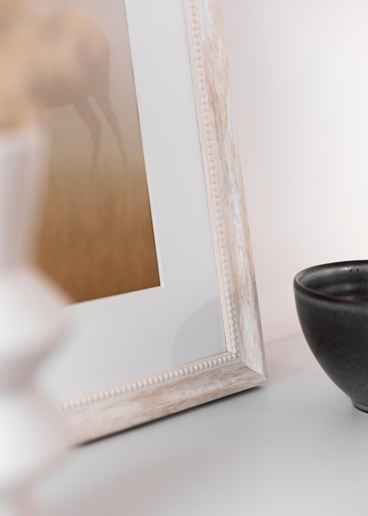 Este hermoso marco de fotos de tamaño 40x60 cm es una combinación perfecta de encanto rústico y elegancia sencilla. Con su color blanco y sutil sensación antigua, es una elección excelente para resaltar tus obras de arte o fotografías favoritas. El borde decorativo de perlas a lo largo del interior del marco ofrece un diseño clásico y detallado que se adapta tanto a interiores modernos como tradicionales.