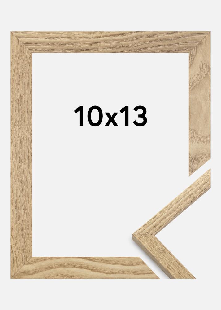 El marco está fabricado en material MDF con un acabado laminado de color roble y tiene un perfil de marco fino de 14 mm. Hay mucho espacio para complementar tus imágenes con un paspartú de lujo, gracias a la profundidad interna del marco de 12 mm.
