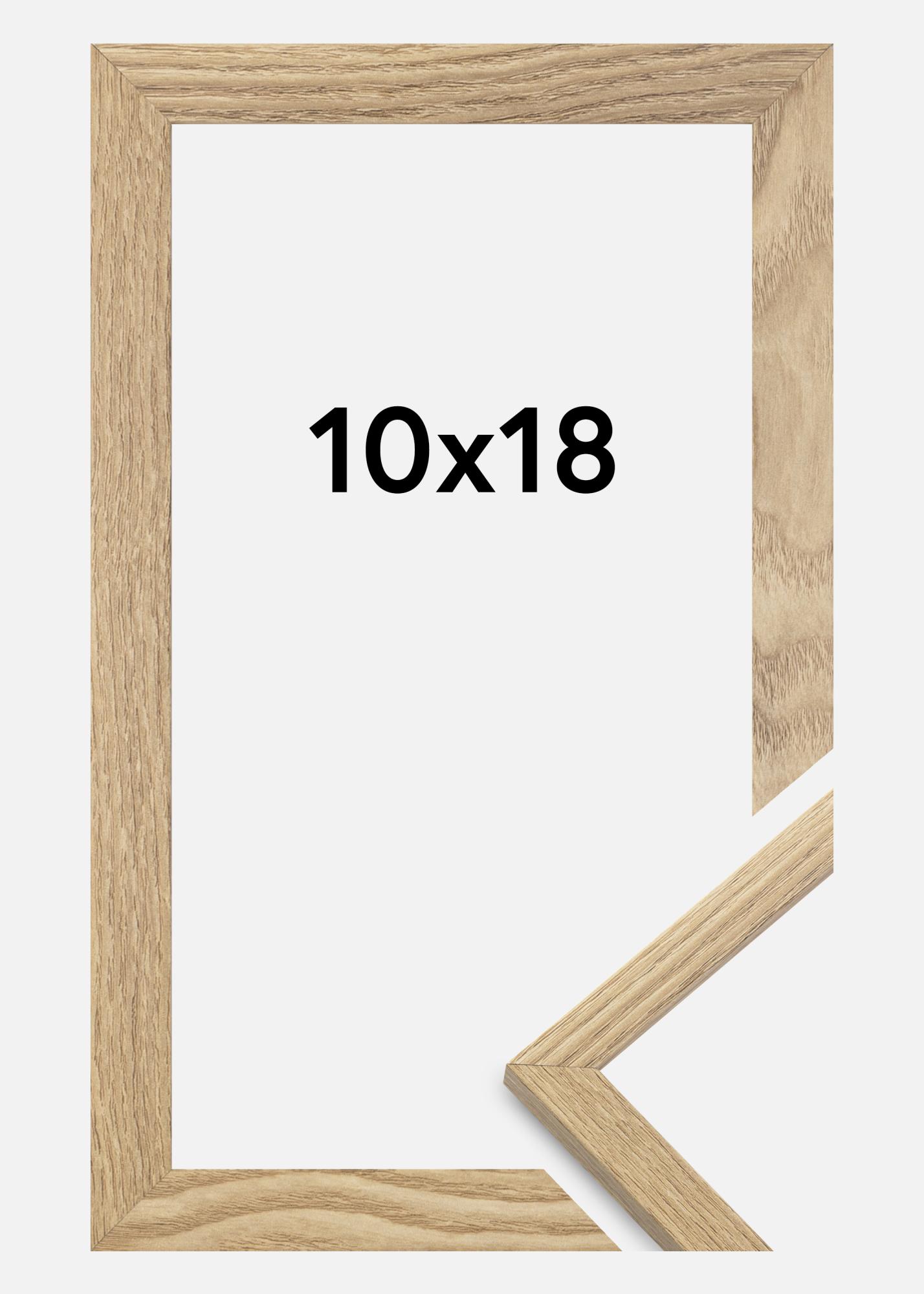 El marco está fabricado en material MDF con un acabado laminado de color roble y tiene un perfil de marco fino de 14 mm. Hay mucho espacio para complementar tus imágenes con un paspartú de lujo, gracias a la profundidad interna del marco de 12 mm.