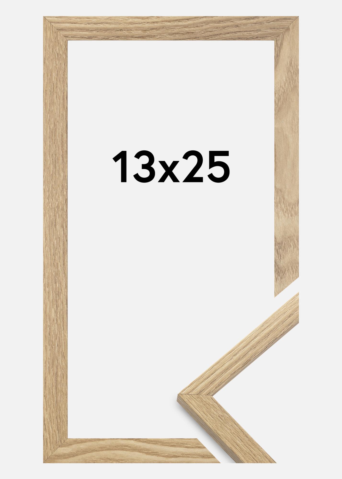 El marco está fabricado en material MDF con un acabado laminado de color roble y tiene un perfil de marco fino de 14 mm. Hay mucho espacio para complementar tus imágenes con un paspartú de lujo, gracias a la profundidad interna del marco de 12 mm.