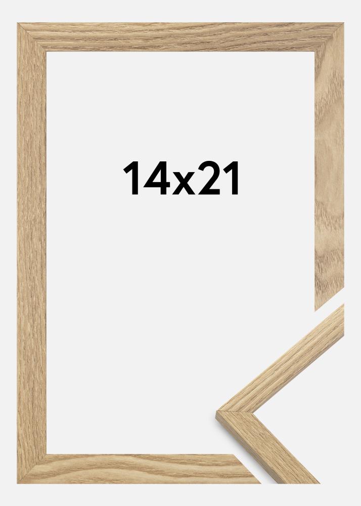El marco está fabricado en material MDF con un acabado laminado de color roble y tiene un perfil de marco fino de 14 mm. Hay mucho espacio para complementar tus imágenes con un paspartú de lujo, gracias a la profundidad interna del marco de 12 mm.
