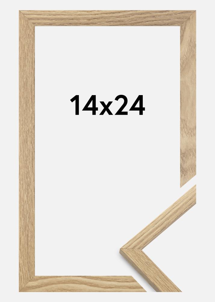 El marco está fabricado en material MDF con un acabado laminado de color roble y tiene un perfil de marco fino de 14 mm. Hay mucho espacio para complementar tus imágenes con un paspartú de lujo, gracias a la profundidad interna del marco de 12 mm.