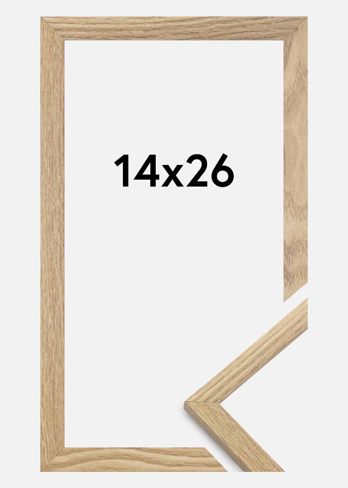 El marco está fabricado en material MDF con un acabado laminado de color roble y tiene un perfil de marco fino de 14 mm. Hay mucho espacio para complementar tus imágenes con un paspartú de lujo, gracias a la profundidad interna del marco de 12 mm.