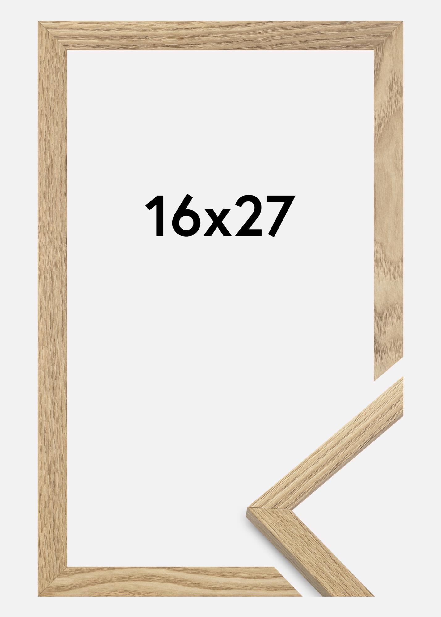 El marco está fabricado en material MDF con un acabado laminado de color roble y tiene un perfil de marco fino de 14 mm. Hay mucho espacio para complementar tus imágenes con un paspartú de lujo, gracias a la profundidad interna del marco de 12 mm.