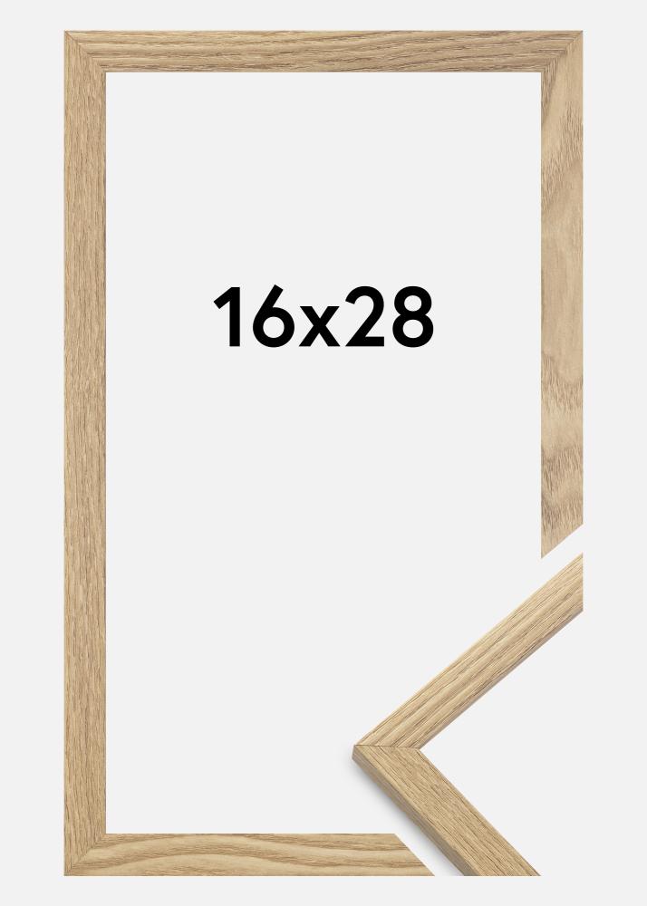 El marco está fabricado en material MDF con un acabado laminado de color roble y tiene un perfil de marco fino de 14 mm. Hay mucho espacio para complementar tus imágenes con un paspartú de lujo, gracias a la profundidad interna del marco de 12 mm.