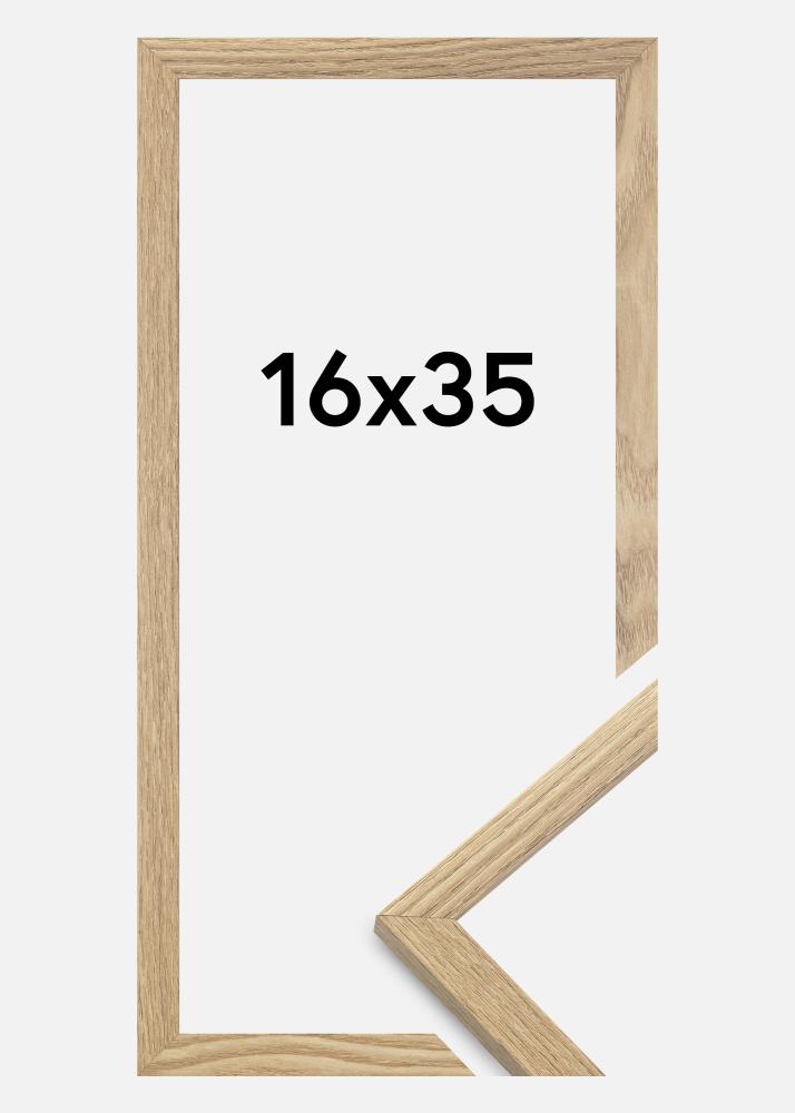 El marco está fabricado en material MDF con un acabado laminado de color roble y tiene un perfil de marco fino de 14 mm. Hay mucho espacio para complementar tus imágenes con un paspartú de lujo, gracias a la profundidad interna del marco de 12 mm.