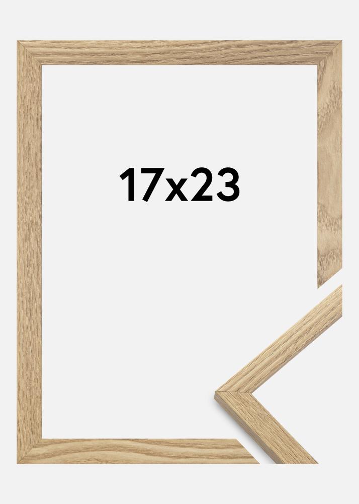 El marco está fabricado en material MDF con un acabado laminado de color roble y tiene un perfil de marco fino de 14 mm. Hay mucho espacio para complementar tus imágenes con un paspartú de lujo, gracias a la profundidad interna del marco de 12 mm.
