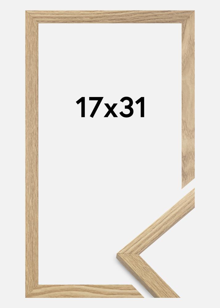 El marco está fabricado en material MDF con un acabado laminado de color roble y tiene un perfil de marco fino de 14 mm. Hay mucho espacio para complementar tus imágenes con un paspartú de lujo, gracias a la profundidad interna del marco de 12 mm.