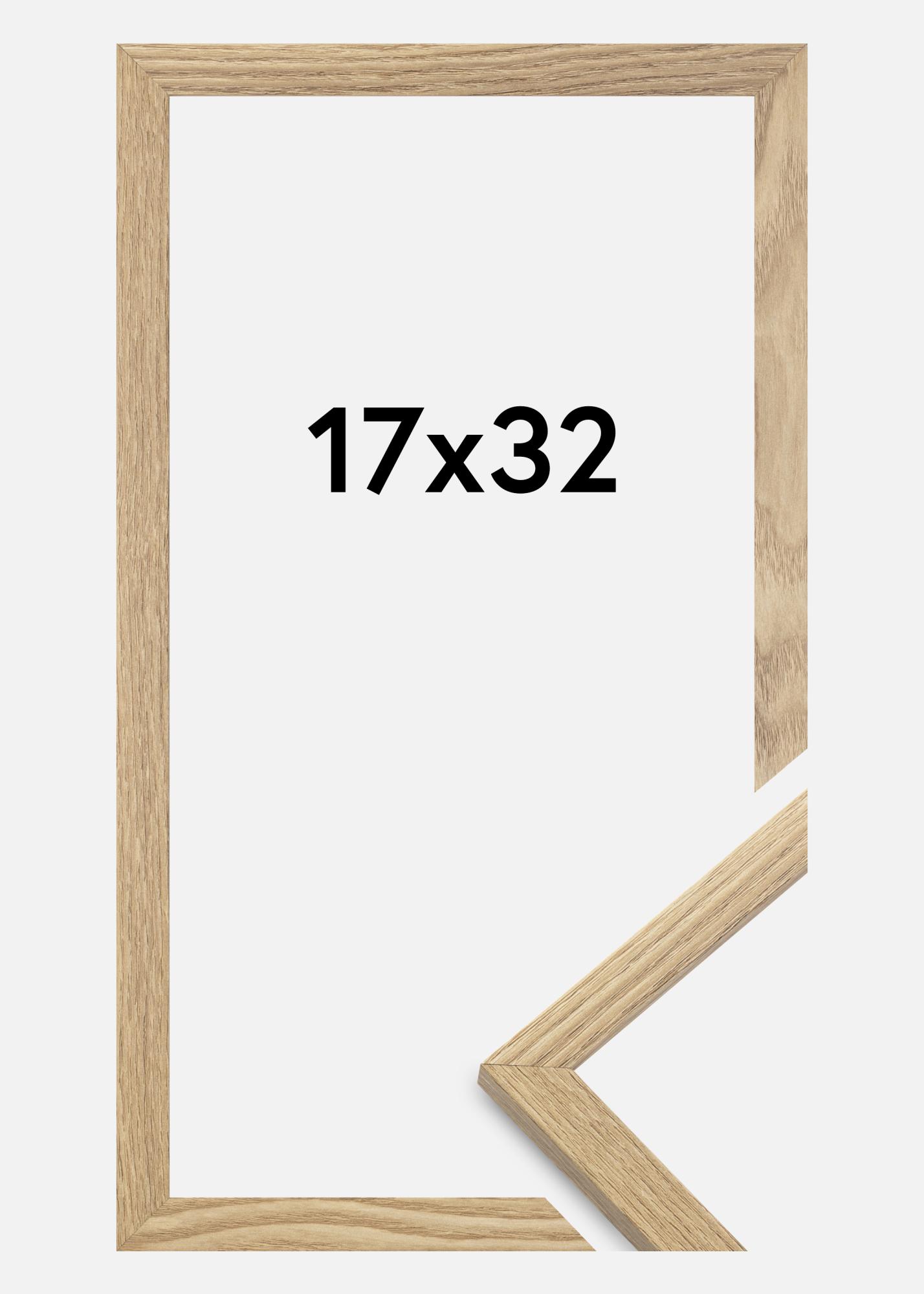 El marco está fabricado en material MDF con un acabado laminado de color roble y tiene un perfil de marco fino de 14 mm. Hay mucho espacio para complementar tus imágenes con un paspartú de lujo, gracias a la profundidad interna del marco de 12 mm.
