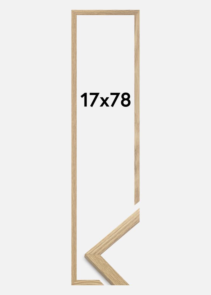 El marco está fabricado en material MDF con un acabado laminado de color roble y tiene un perfil de marco fino de 14 mm. Hay mucho espacio para complementar tus imágenes con un paspartú de lujo, gracias a la profundidad interna del marco de 12 mm.