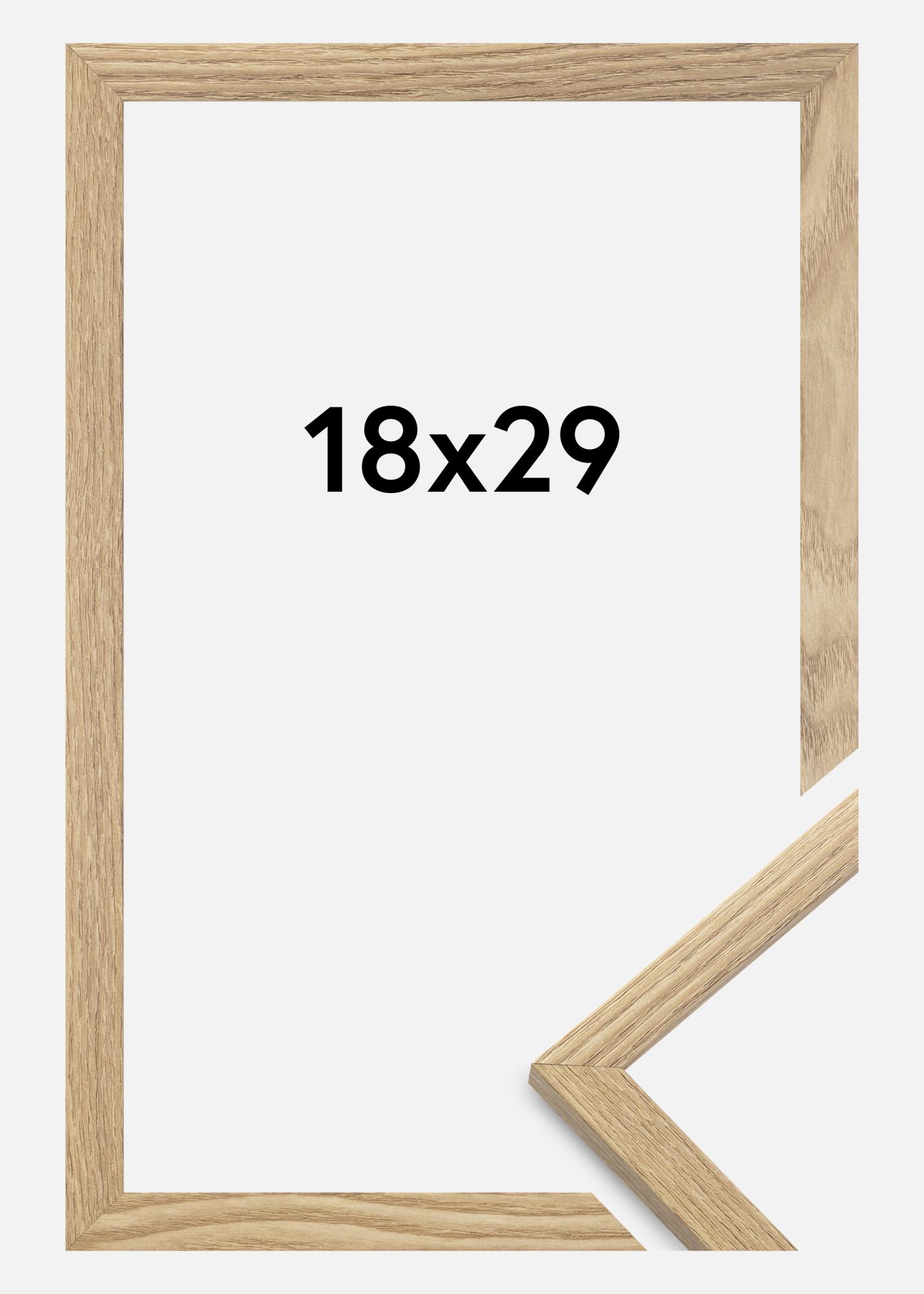 El marco está fabricado en material MDF con un acabado laminado de color roble y tiene un perfil de marco fino de 14 mm. Hay mucho espacio para complementar tus imágenes con un paspartú de lujo, gracias a la profundidad interna del marco de 12 mm.