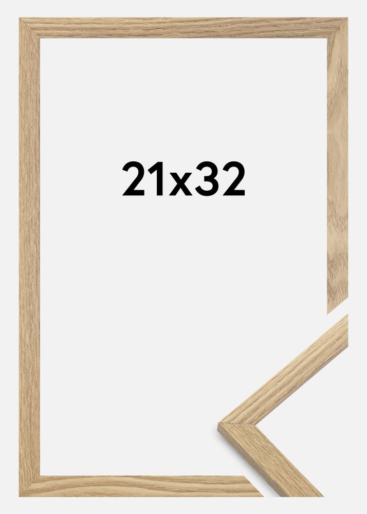 El marco está fabricado en material MDF con un acabado laminado de color roble y tiene un perfil de marco fino de 14 mm. Hay mucho espacio para complementar tus imágenes con un paspartú de lujo, gracias a la profundidad interna del marco de 12 mm.