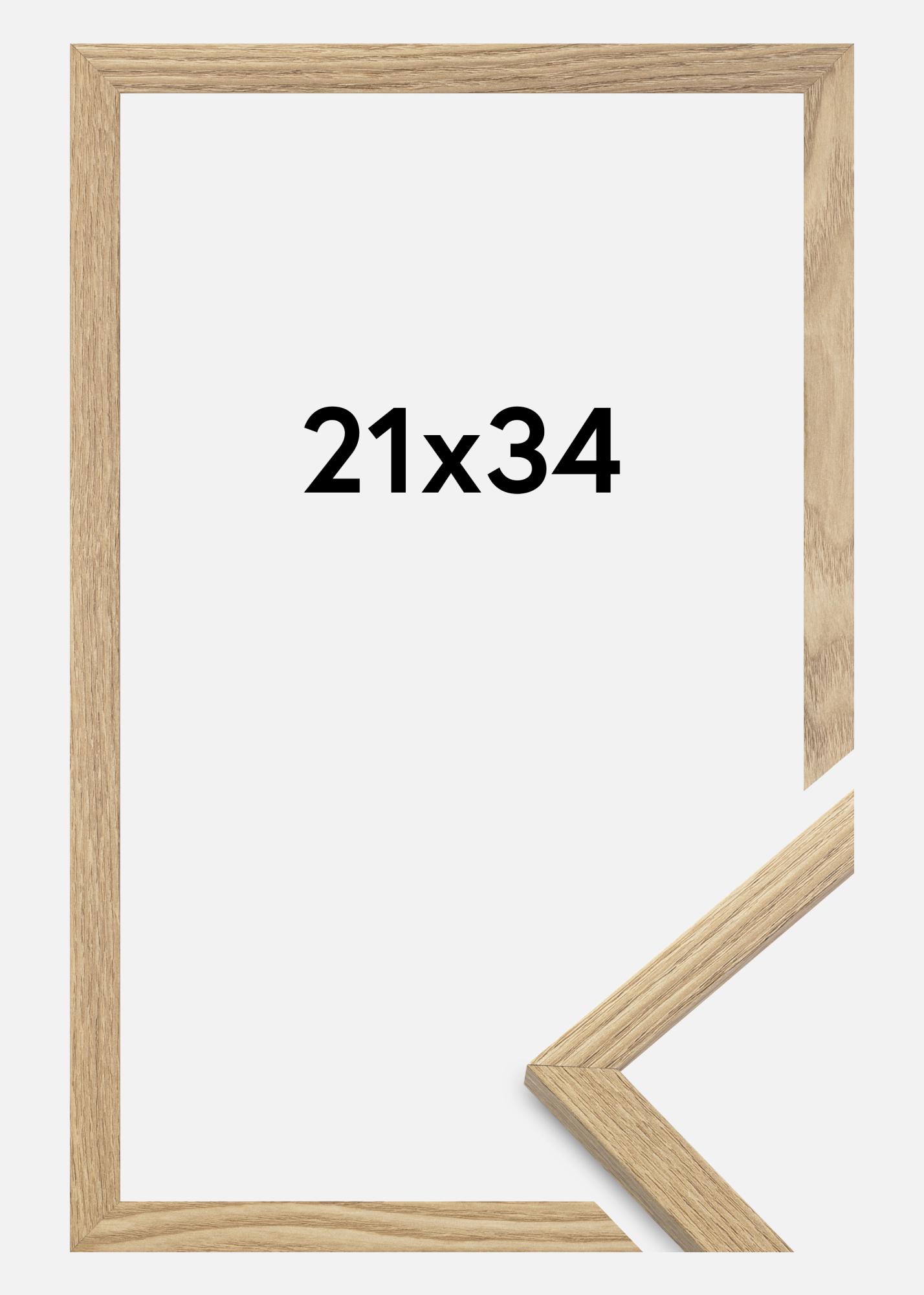 El marco está fabricado en material MDF con un acabado laminado de color roble y tiene un perfil de marco fino de 14 mm. Hay mucho espacio para complementar tus imágenes con un paspartú de lujo, gracias a la profundidad interna del marco de 12 mm.