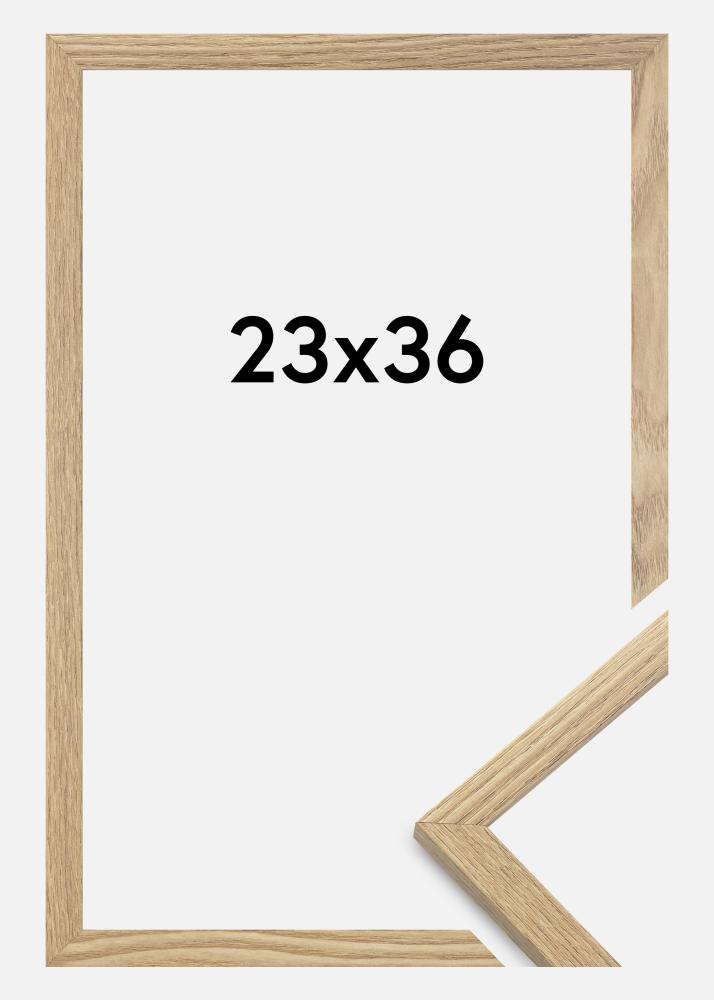 El marco está fabricado en material MDF con un acabado laminado de color roble y tiene un perfil de marco fino de 14 mm. Hay mucho espacio para complementar tus imágenes con un paspartú de lujo, gracias a la profundidad interna del marco de 12 mm.