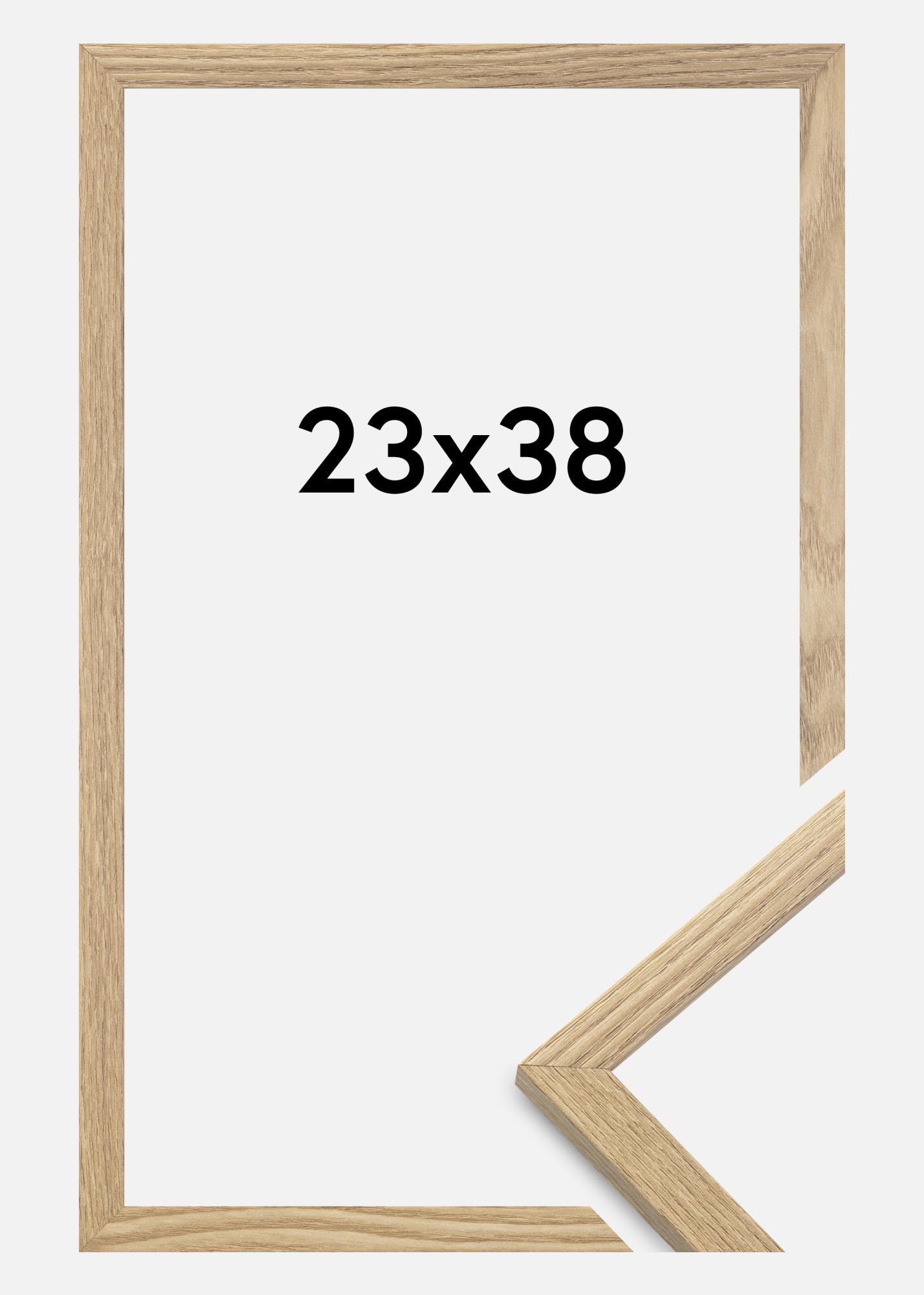 El marco está fabricado en material MDF con un acabado laminado de color roble y tiene un perfil de marco fino de 14 mm. Hay mucho espacio para complementar tus imágenes con un paspartú de lujo, gracias a la profundidad interna del marco de 12 mm.