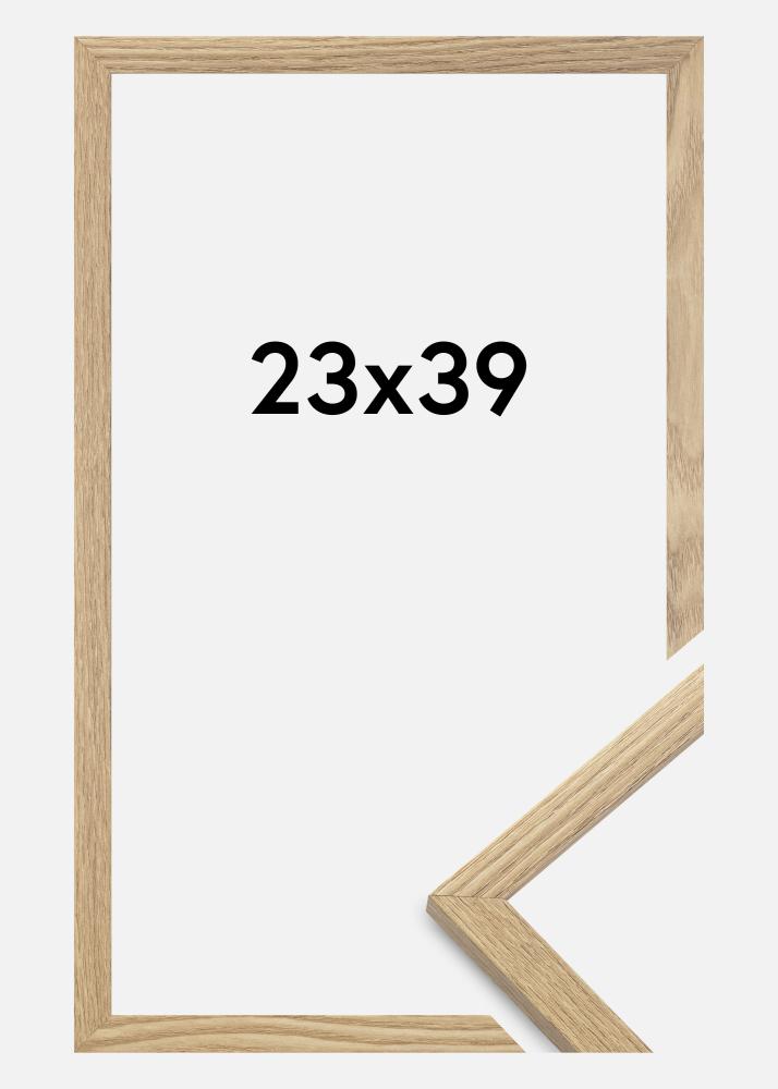 El marco está fabricado en material MDF con un acabado laminado de color roble y tiene un perfil de marco fino de 14 mm. Hay mucho espacio para complementar tus imágenes con un paspartú de lujo, gracias a la profundidad interna del marco de 12 mm.