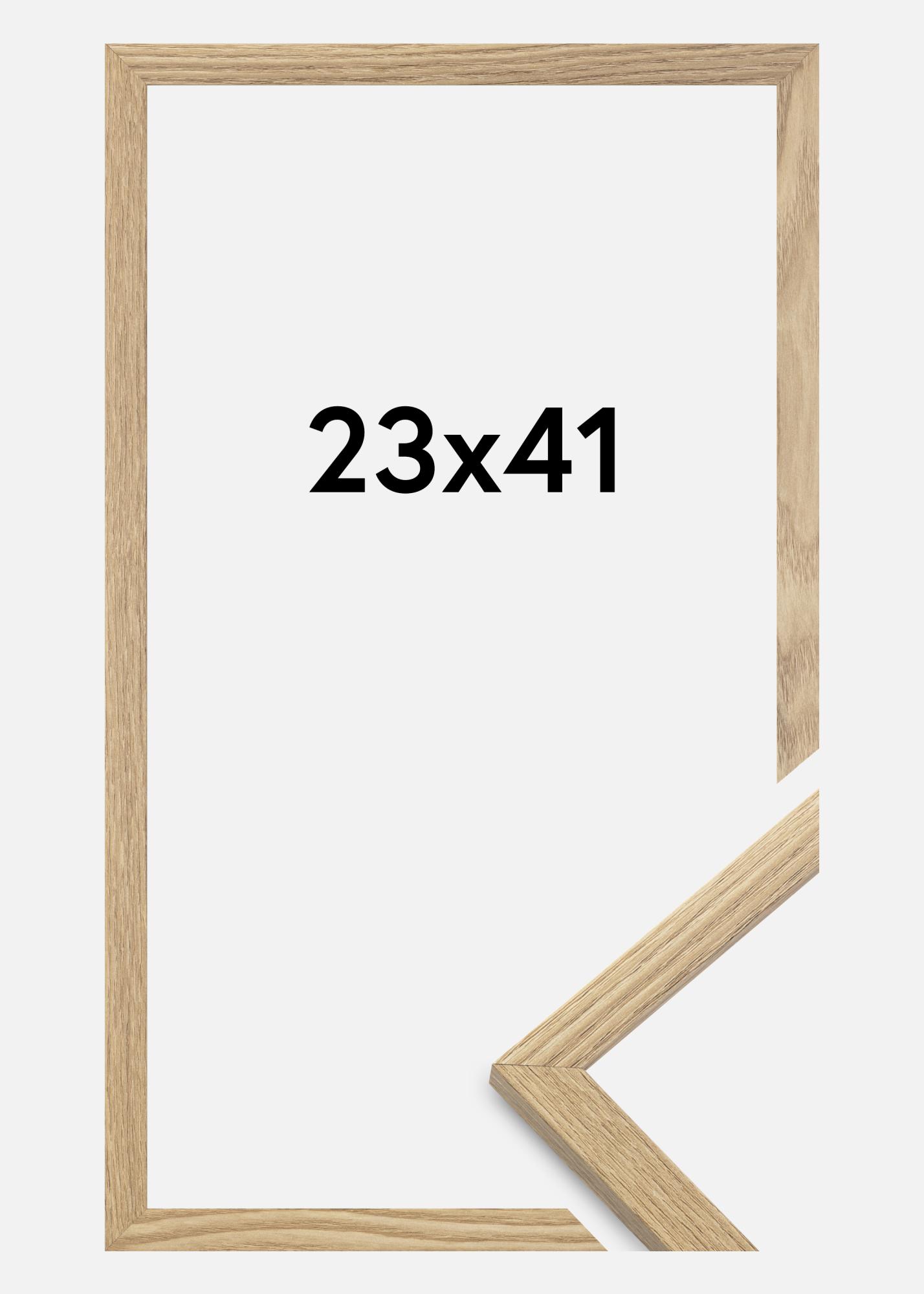 El marco está fabricado en material MDF con un acabado laminado de color roble y tiene un perfil de marco fino de 14 mm. Hay mucho espacio para complementar tus imágenes con un paspartú de lujo, gracias a la profundidad interna del marco de 12 mm.