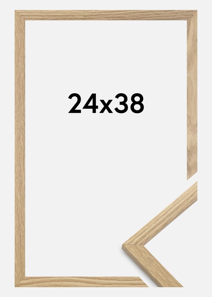 El marco está fabricado en material MDF con un acabado laminado de color roble y tiene un perfil de marco fino de 14 mm. Hay mucho espacio para complementar tus imágenes con un paspartú de lujo, gracias a la profundidad interna del marco de 12 mm.