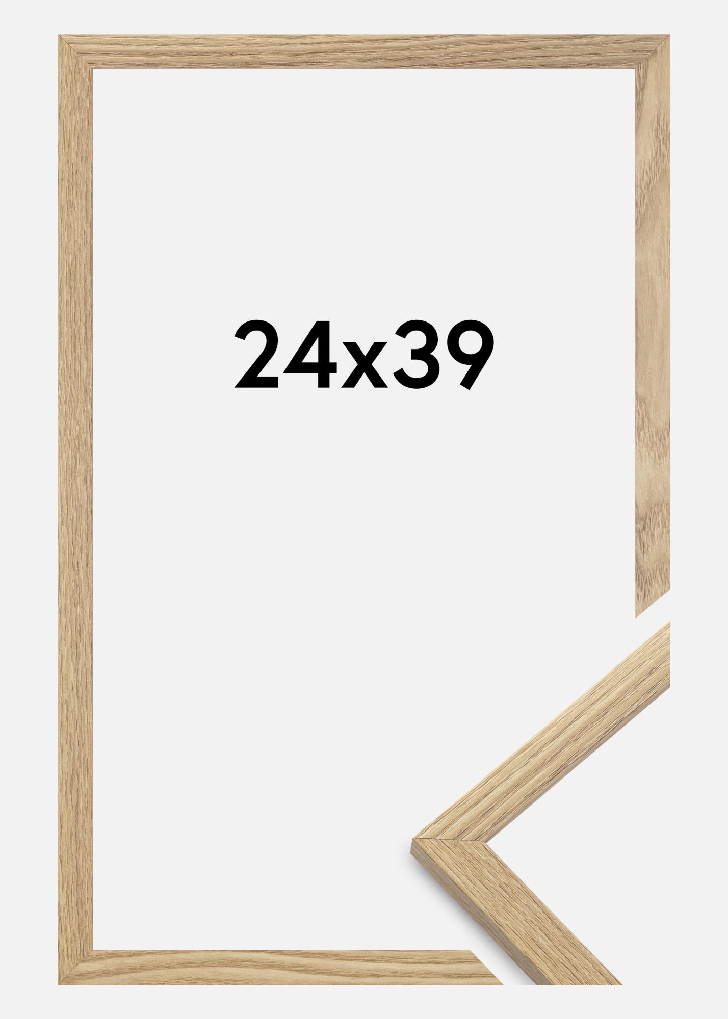 El marco está fabricado en material MDF con un acabado laminado de color roble y tiene un perfil de marco fino de 14 mm. Hay mucho espacio para complementar tus imágenes con un paspartú de lujo, gracias a la profundidad interna del marco de 12 mm.