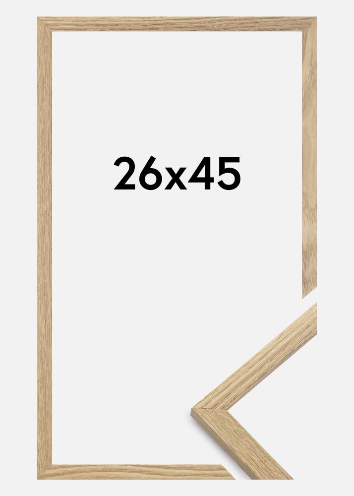 El marco está fabricado en material MDF con un acabado laminado de color roble y tiene un perfil de marco fino de 14 mm. Hay mucho espacio para complementar tus imágenes con un paspartú de lujo, gracias a la profundidad interna del marco de 12 mm.
