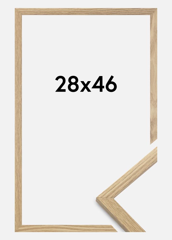El marco está fabricado en material MDF con un acabado laminado de color roble y tiene un perfil de marco fino de 14 mm. Hay mucho espacio para complementar tus imágenes con un paspartú de lujo, gracias a la profundidad interna del marco de 12 mm.