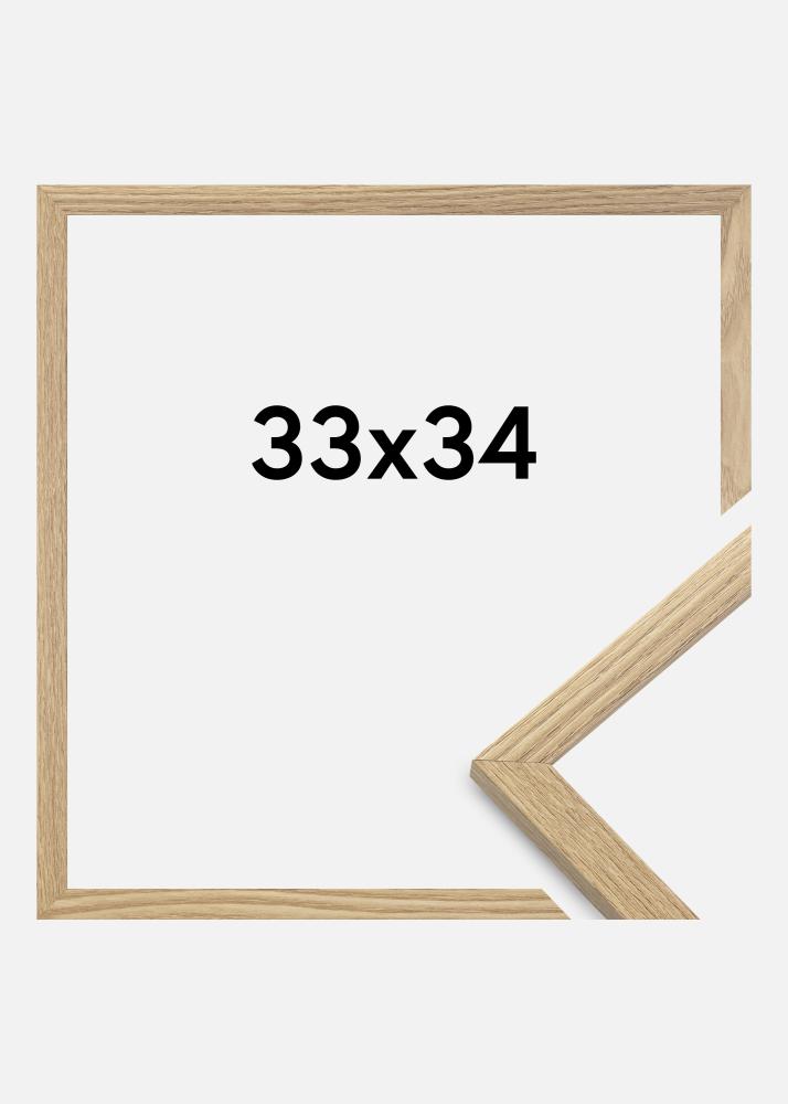 El marco está fabricado en material MDF con un acabado laminado de color roble y tiene un perfil de marco fino de 14 mm. Hay mucho espacio para complementar tus imágenes con un paspartú de lujo, gracias a la profundidad interna del marco de 12 mm.
