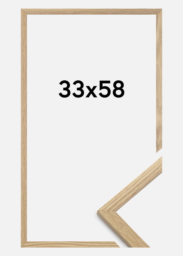 El marco está fabricado en material MDF con un acabado laminado de color roble y tiene un perfil de marco fino de 14 mm. Hay mucho espacio para complementar tus imágenes con un paspartú de lujo, gracias a la profundidad interna del marco de 12 mm.