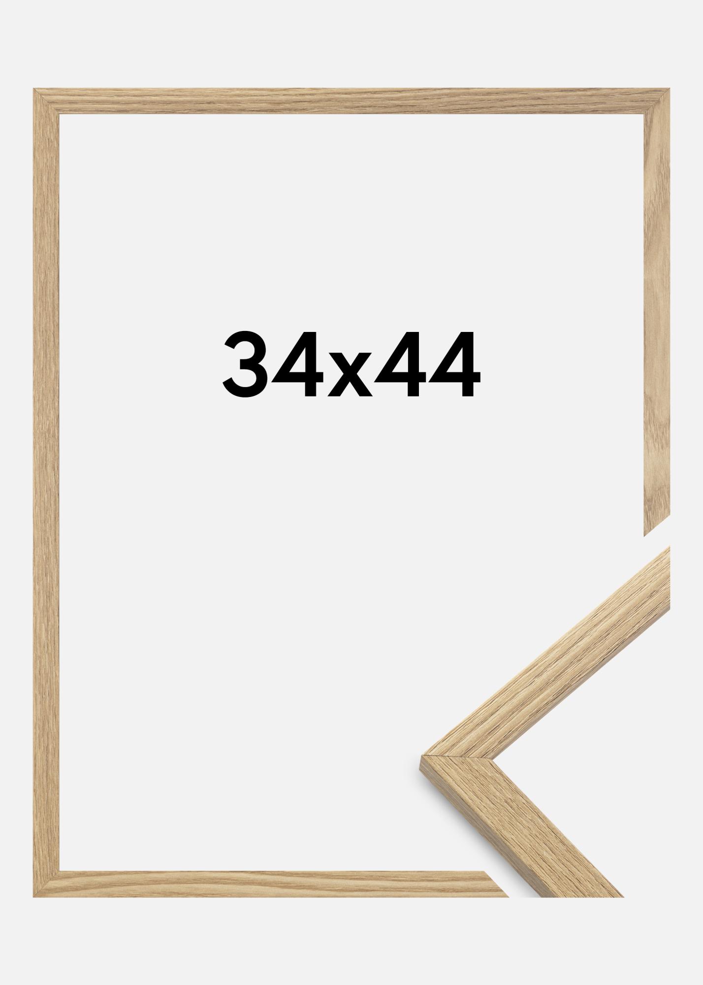 El marco está fabricado en material MDF con un acabado laminado de color roble y tiene un perfil de marco fino de 14 mm. Hay mucho espacio para complementar tus imágenes con un paspartú de lujo, gracias a la profundidad interna del marco de 12 mm.