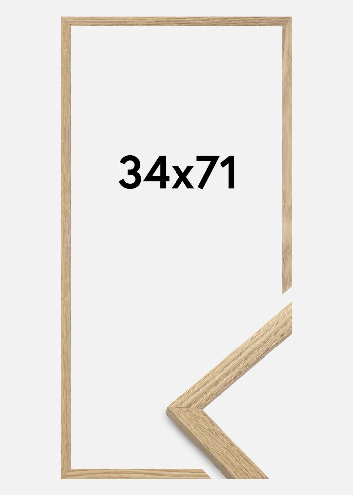 El marco está fabricado en material MDF con un acabado laminado de color roble y tiene un perfil de marco fino de 14 mm. Hay mucho espacio para complementar tus imágenes con un paspartú de lujo, gracias a la profundidad interna del marco de 12 mm.