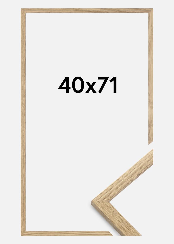 El marco está fabricado en material MDF con un acabado laminado de color roble y tiene un perfil de marco fino de 14 mm. Hay mucho espacio para complementar tus imágenes con un paspartú de lujo, gracias a la profundidad interna del marco de 12 mm.