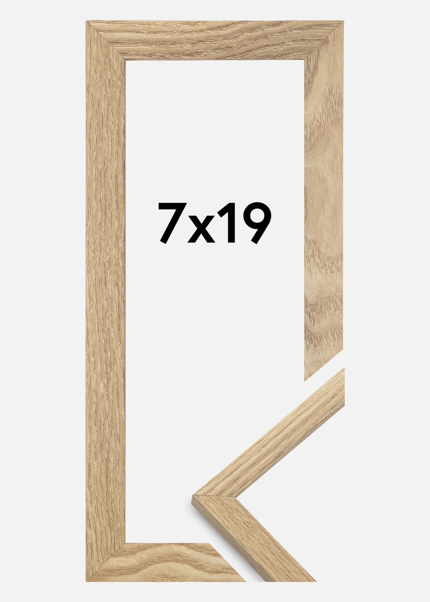 El marco está fabricado en material MDF con un acabado laminado de color roble y tiene un perfil de marco fino de 14 mm. Hay mucho espacio para complementar tus imágenes con un paspartú de lujo, gracias a la profundidad interna del marco de 12 mm.